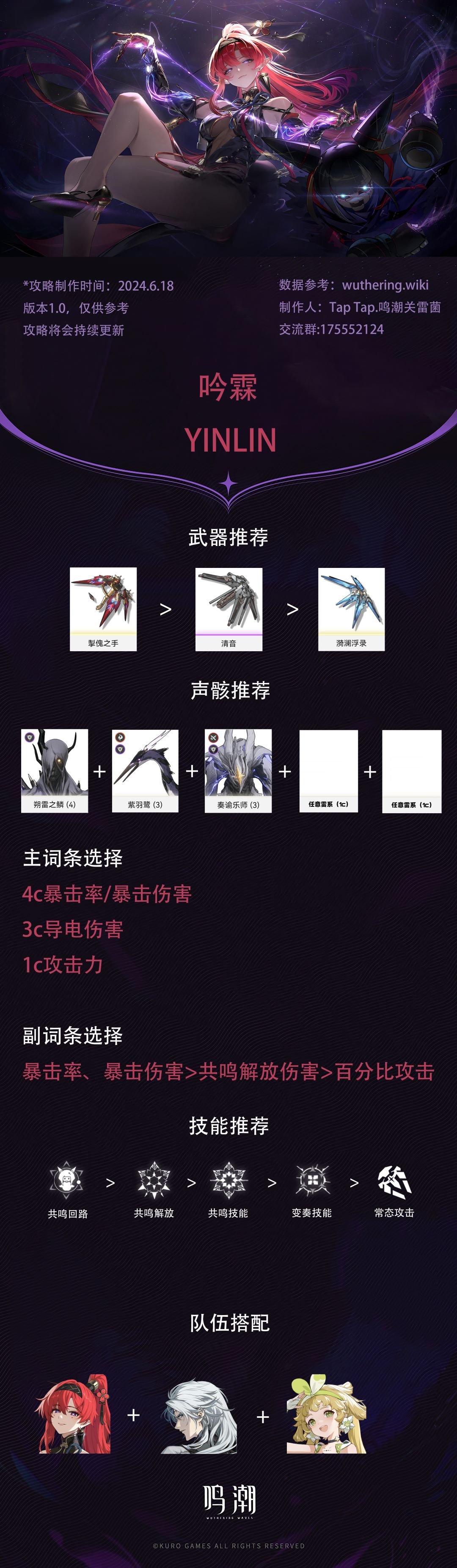 【V1.0攻略·角色攻略】吟霖养成一图流