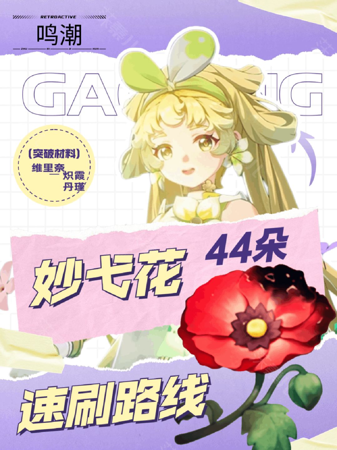 大家好呀,这里是莯桑儿,本期给大家带来的是妙弋花的采集路线,妙弋花是维里奈,丹瑾,炽霞的突破材料 妙弋花集中生长在焚焰海,地面上可采集29朵,商店购买15朵#攻略 #鸣潮公测创作征集令 #游戏攻略 #鸣潮 #妙弋花#鸣潮攻略