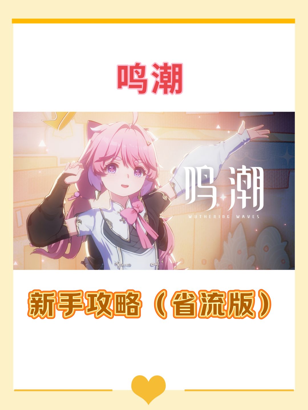 ✨目录: ①开荒 ②抽卡 ③配队 ④小技巧 ⑤兑换码 ——————————正文—————————— ①开荒 做主线→做支线+开宝箱升级→打BOSS→掉声骸→肝声骸等级→掉金色声骸 ②抽卡 有新手池/普池/武器池/限定池 新手池50抽(8折)必5⭐ 普池80抽自选5⭐ 武器池80抽必5⭐(不歪) 商店可兑换2命 ③配队 新手池出卡卡罗/安可/凌阳(输出) 跳过〖忌炎〗