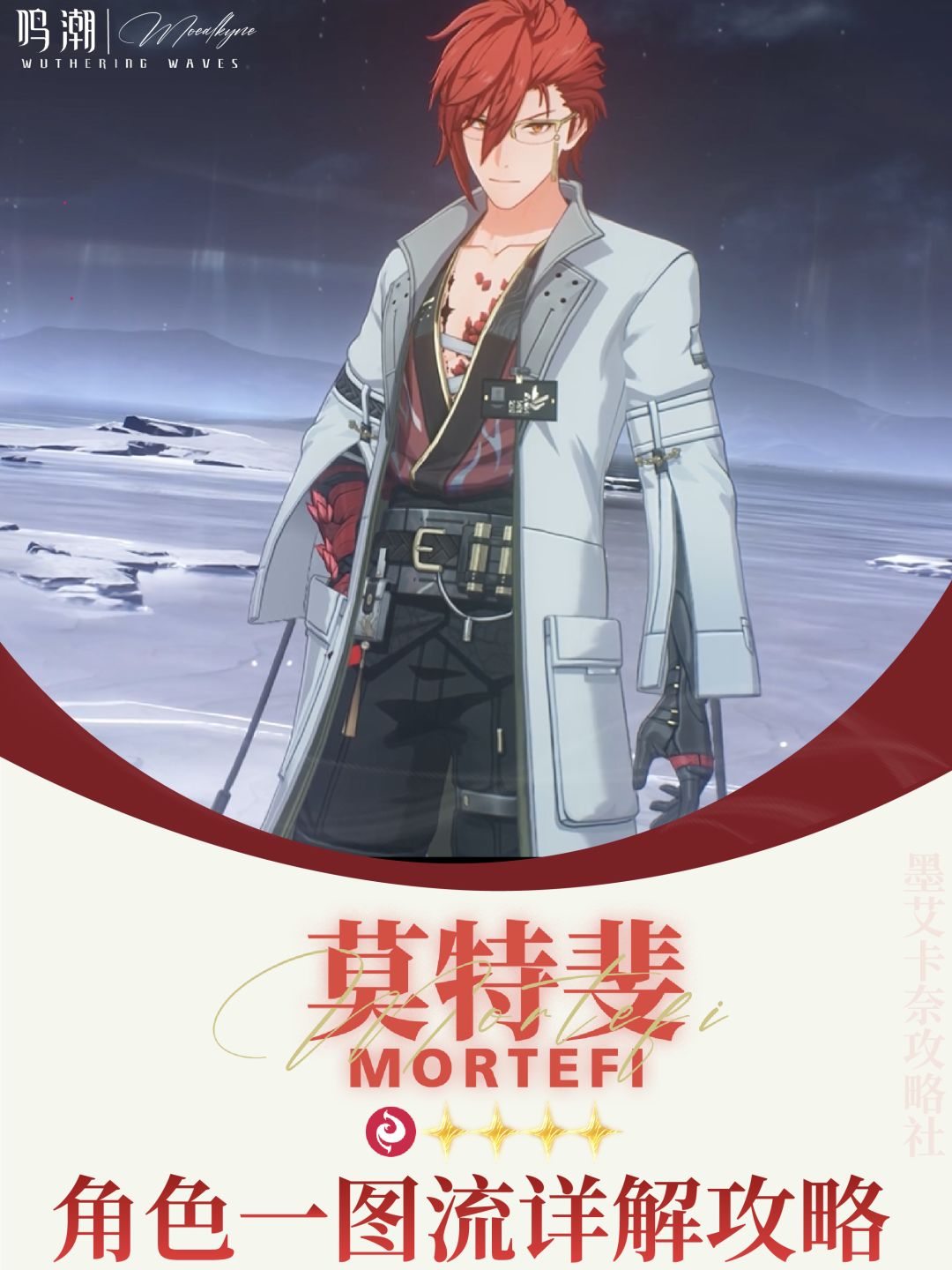 哦呀!这里是Moealkyne! 本期为大家带来的是【鸣潮】V2.0四星角色莫特斐的养成攻略~ 【此角色一图流适用2.0正式服!相关数据已经过游戏内查询~】 【正式服UID:100532881】 本篇攻略将会按照培养素材需求、技能优先级推荐、武器推荐、声骸推荐、共鸣链分析、配队建议等多个方面,详细剖析该角色的方方面面! 「模板更新」 从2.0版本开始,我们将采用全新的模板制作角色一图流攻略!攻略