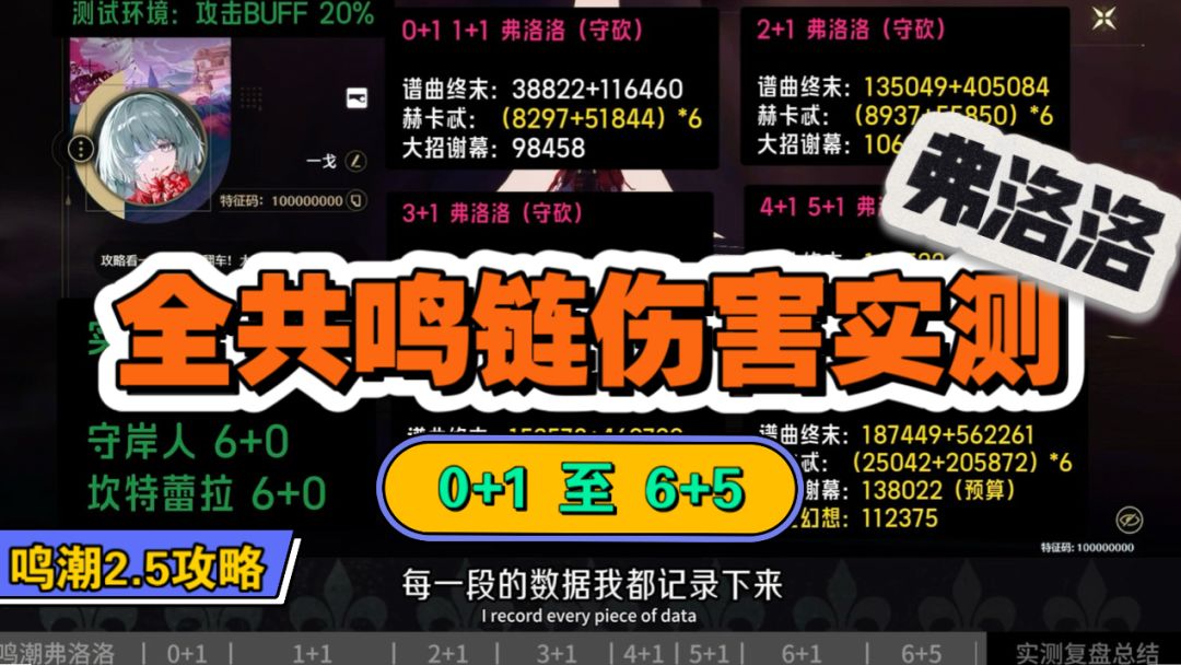 弗洛洛全共鸣链伤害实测,从0+1到6+5,鸣潮2.5攻略。