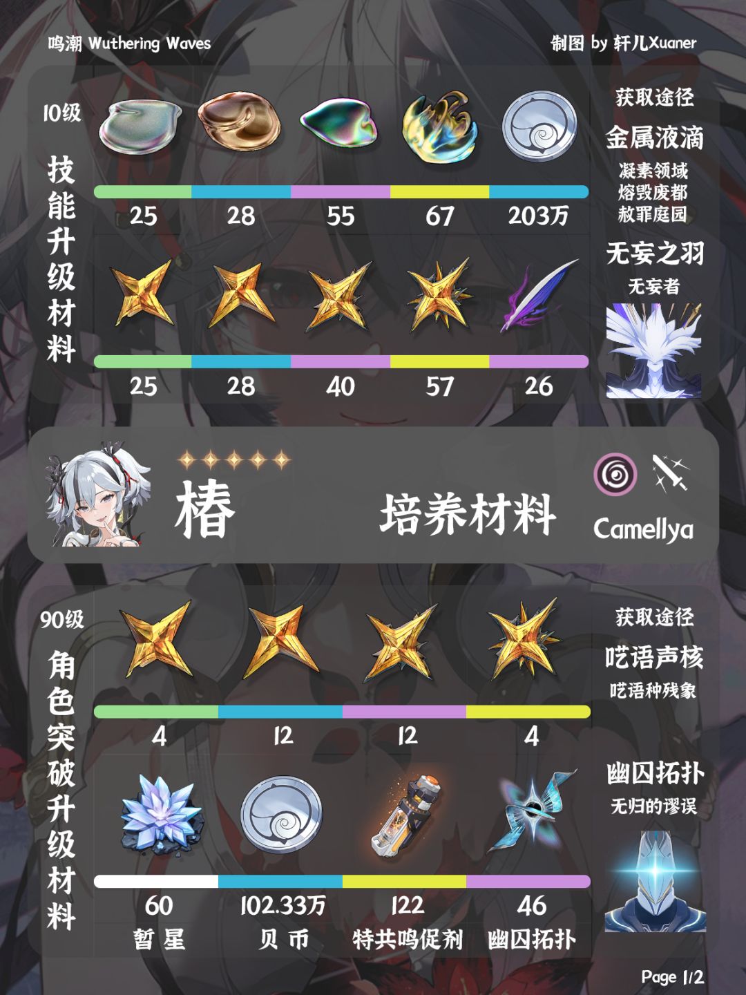 椿培养材料来啦,椿厨可以开始准备材料啦,包括椿突破升级材料、技能升级材料、专武裁春突破升级材料、暂星采集位置路线。 ------------------------------------------------------- 金属液滴系列:在凝素领域·熔毁废都以及凝素领域·赦罪庭园刷取 呓语声核系列:呓语种残象敌人掉落 啸叫声核系列:啸叫种残象掉落,野兽类怪物 技能周本材料无妄之羽:周本BOSS