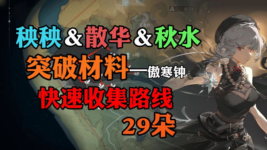 #鸣潮 #鸣潮攻略 Hello大家好,我是小鸟游,本期攻略为大家带来傲寒钟的快速收集路线~~~ 全路线(不是全图!全图分布太广收集不便且没必要)共29颗,傲寒钟分布于鸣钟涧两岸,全程几乎都是一条直线,非常好找,大体可以看这张点位图。 ok我们传送来到瑝珑的云陵谷小型信标处 到了小型信标后镜头往南(左边)移,正对着前面远处一条大瀑布往下跳 在下面那棵树旁边就是第一颗傲寒钟 捡到后镜头往东(左边)移,
