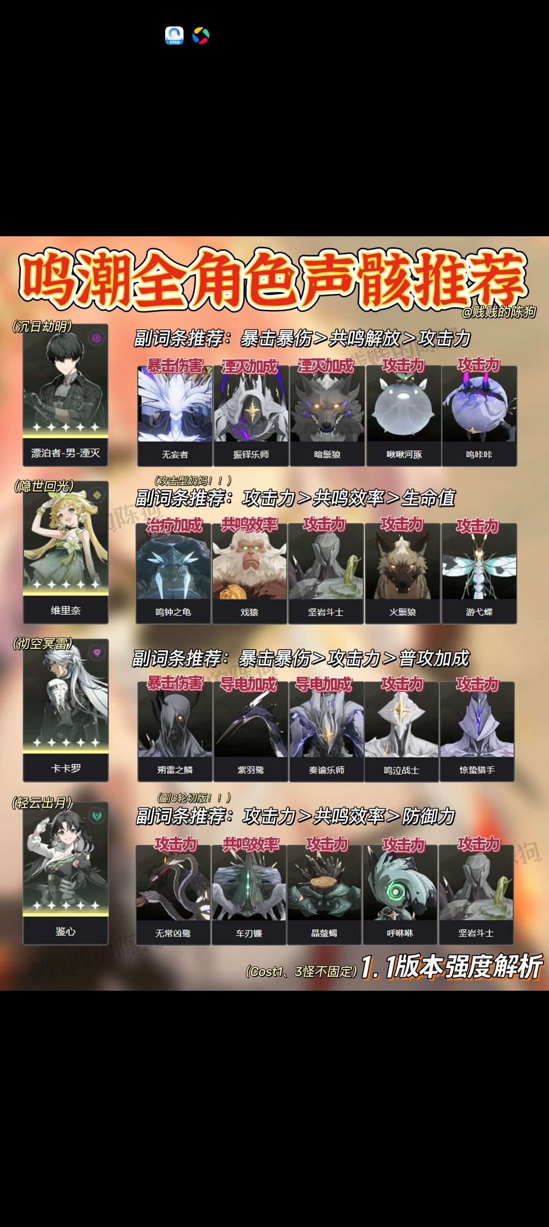 鸣潮 | 1.1版本全角色骸骨推荐!新手速来
