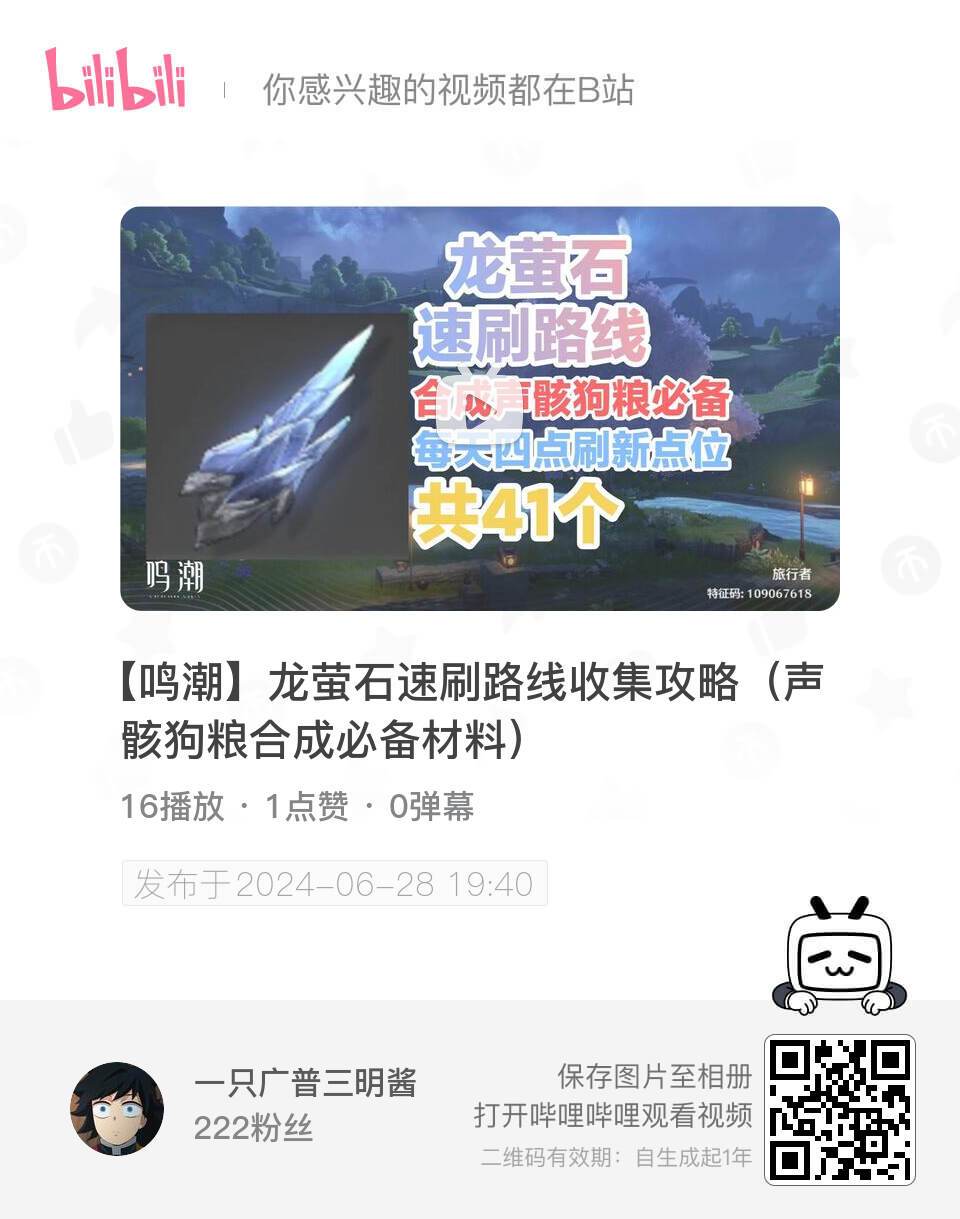 【鸣潮】龙萤石速刷路线收集攻略(声骸狗粮合成必备材料)-哔哩哔哩 https://b23.tv/ZBpWM1c #鸣潮 #鸣潮游戏攻略 #采集物收集