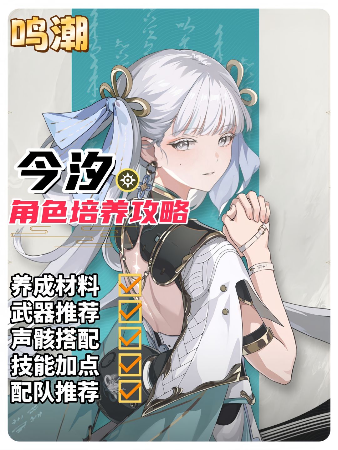 养成材料 武器推荐 声骸搭配 技能加点 配队推荐#鸣潮 #鸣潮创作激励 #鸣潮致缄默以欢歌 #鸣潮黎那汐塔 #鸣潮攻略 #鸣潮今汐