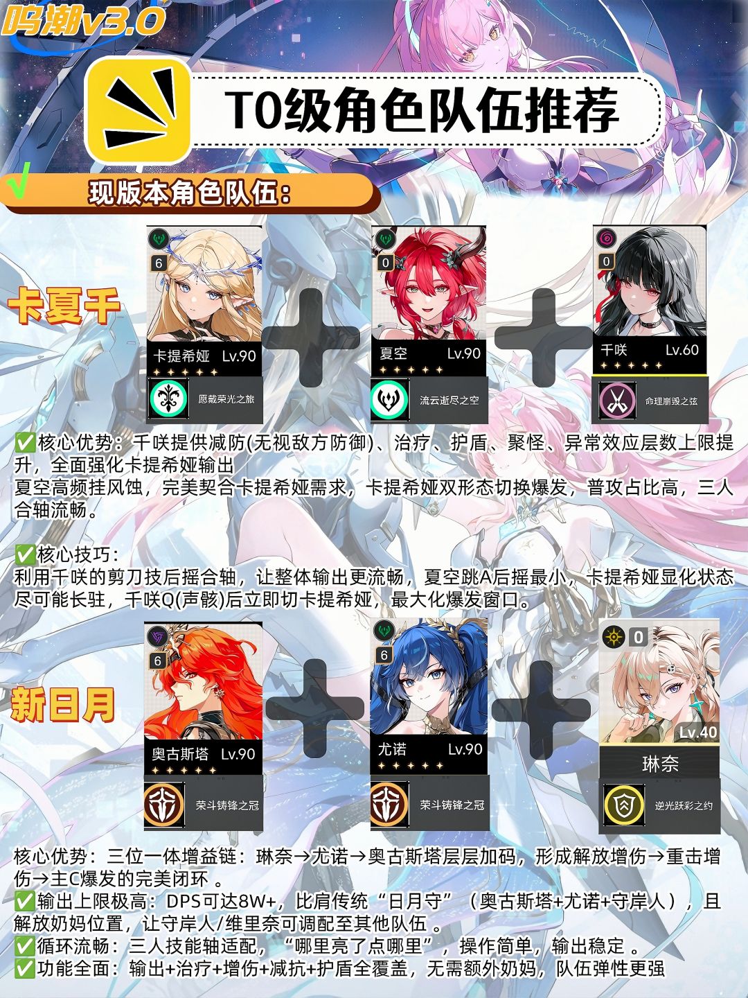 鸣潮2.5卡池的弗洛洛已经up了一段时间,同时陪跑的还有小萝莉洛可可,下半卡池则是坎特蕾拉、布兰特的复刻;想抽弗洛洛的自然是最好一起拿下坎特蕾拉,随着弗洛洛的登场,截止到2.5版本全角色强度综合排名也终于是出炉了,一起来看看吧! 随着弗洛洛上线,全角色强度排名也是发生了不小的改动,T0强度一共有三位角色,分别是:卡提希娅、赞妮、守岸人。 其中守岸人作为1.3版本登场的角色,零命机制完整,现版本依旧