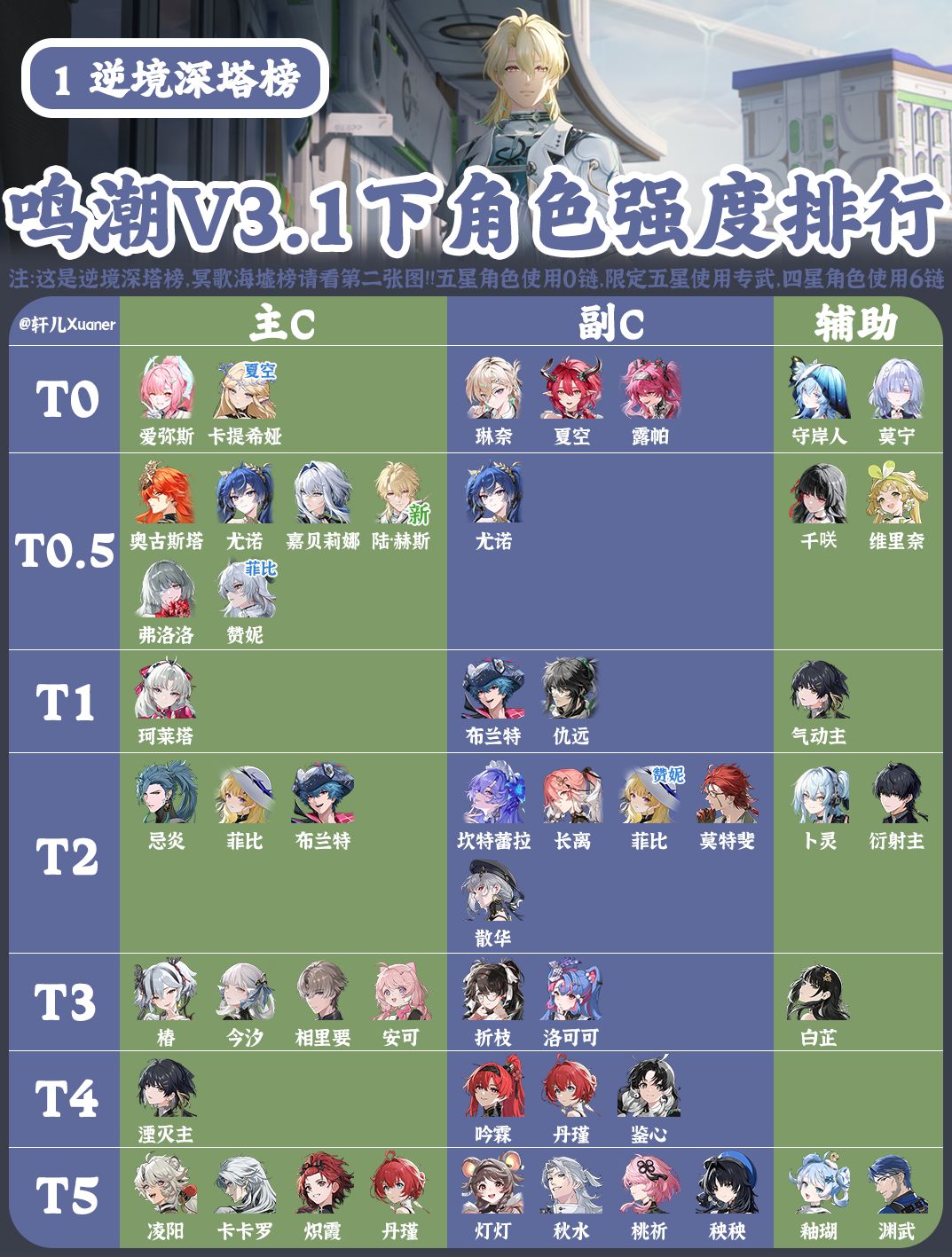 鸣潮最新3.0版本全角色培养一图流来了,截至琳奈共计44名角色。当前主要是给新入坑玩家使用,预计3.0晚些时候/3.1轩儿Xuaner会再更新一版把新的五把常驻武器计算进去,老漂们稍安勿躁~ ---------------------- 更新内容 ① 新增卜灵、琳奈。 ② 尤诺、相里要、卡卡罗等推荐配队做部分调整。 ---------------------- 攻略食用指南 ① 本篇内容大家可自己