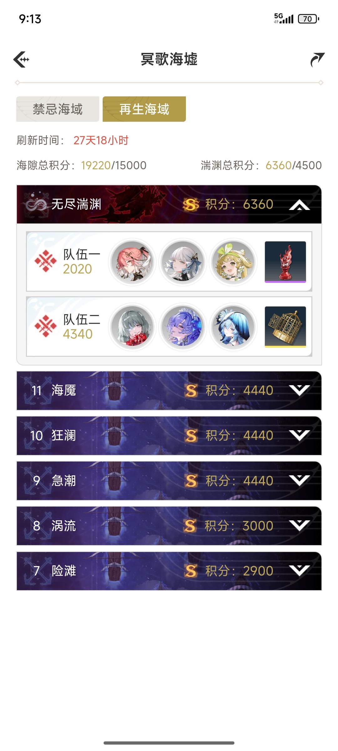 总结: 一、日常 1860 二、心之集域 800 三、巡历往昔之风 500 四、行旅图集-阿维纽林 300 五、悬殿寻影 180 六、幽潮赠礼 160*5=800(5抽限定换算800星声) 合计:1860+800+500+300+180+800=4440星声-----4440/160=27.75约28抽 周期30天内所有玩家都可以获得的奖励合计:4440星声 ------------------