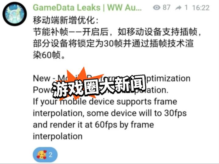近日,鸣潮移动端最新外网优化信息曝光,新增“节能补帧”功能,瞬间在玩家圈引发讨论。开启后,支持插帧的设备会锁定30帧,再通过插帧技术渲染出60帧画面,主打省电流畅。有玩家担心这是负优化,其实并非如此,这个功能主要是给配置偏低的手机准备的,让低配机也能用上60帧,算是官方照顾不同机型的贴心操作。目前不少高配手机已经能稳定120帧,这次优化对他们没有影响,大家各取所需即可。 不过PC玩家却有