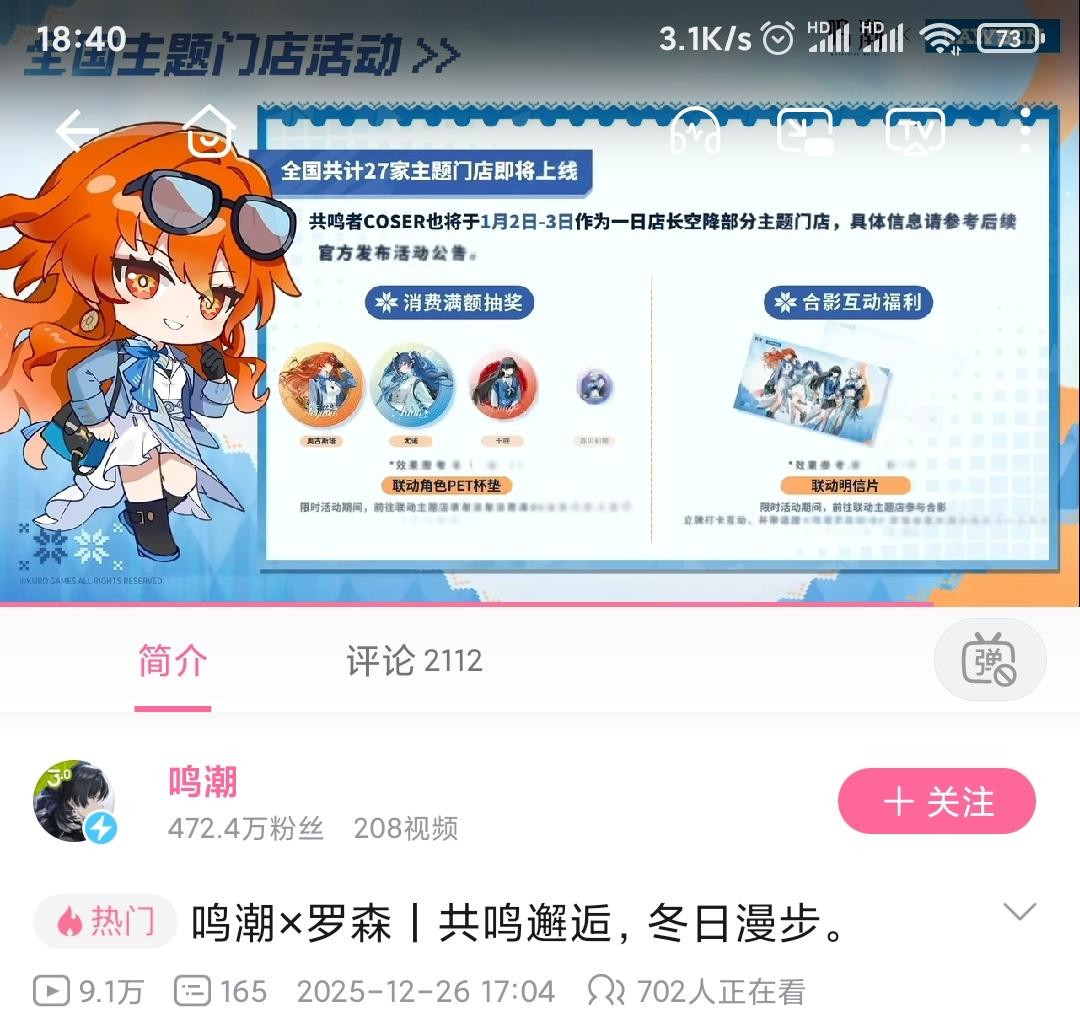 #鸣潮 #鸣潮千咲 离开停滞的漫长季节,重新走入更迭的四季。久违的校园生活将再度开启,在这之前,先悠然享受,冬日的美好时刻吧~✦ 有奖活动 ✦关注@鸣潮 账号,并在本活动贴下方留言讨论,即可视为成功参与本次活动。我们会抽取5位漂泊者送出「鸣潮共鸣者服饰系列亚克力立牌(随机款)」*1,截止至12月28日20:00。《鸣潮》3.0版本「我们生而眺望」将于12月25日正式开启!《鸣潮》「星炬