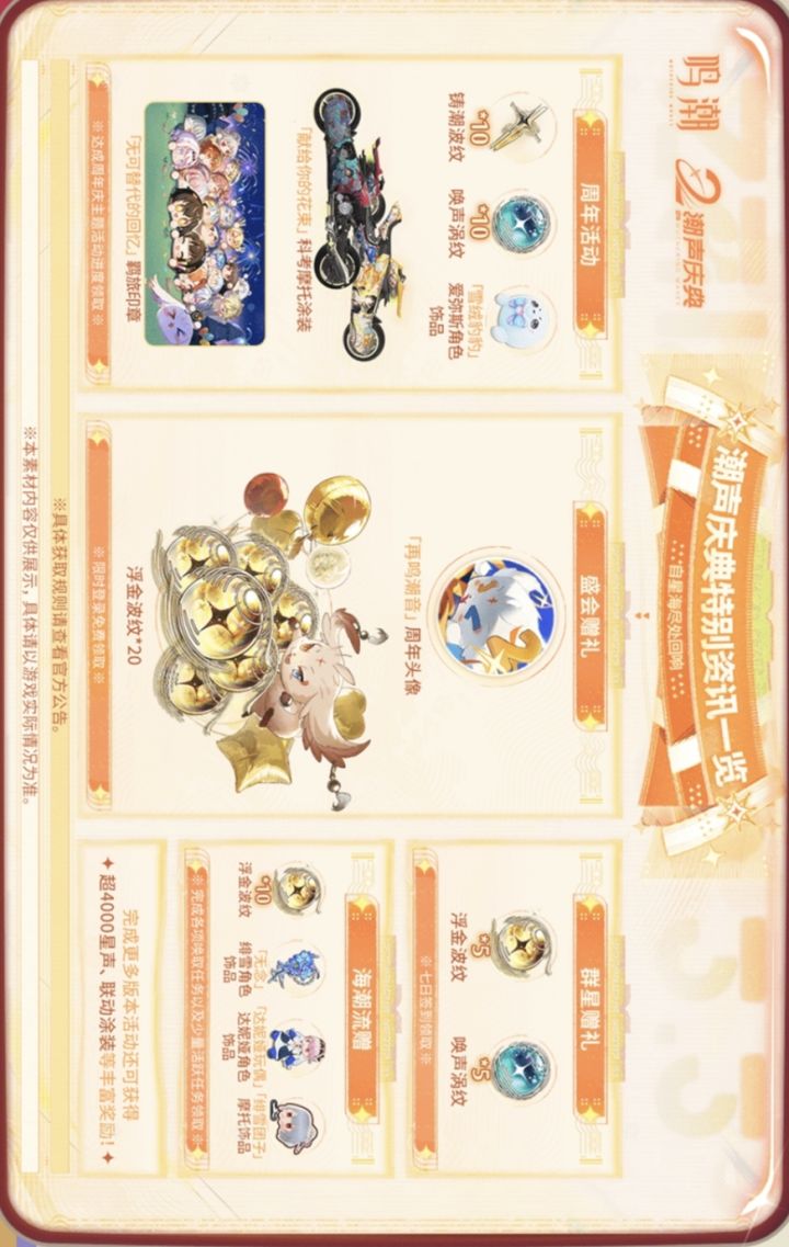 《鸣潮》潮声庆典4月30日开启,新版本免费领取40抽!参与网页应援活动,可获得星声等奖励!