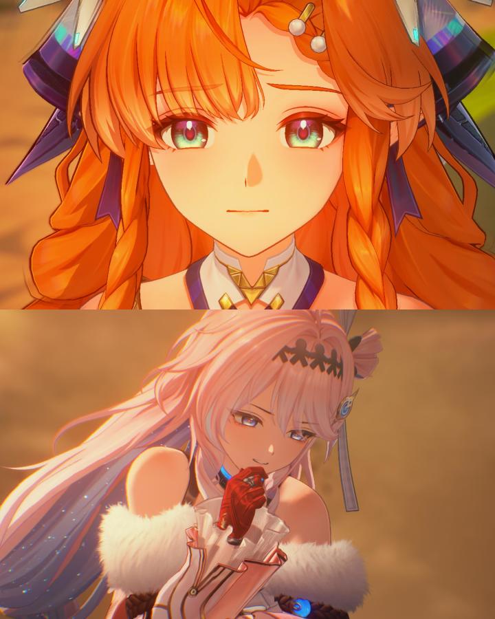 #鸣潮创作激励 小橘子和她的好闺闺镇楼3.2虽然演出很多时长拉满,但在我这依然是观感不好的版本。当然啦,这个不好是相对于鸣潮自己而言,而且演出质量,微表情的丰富程度,各种小暗示,暗面地图设计,BGM依旧是超高水准问题在于前半太过于拖沓,本身西格莉卡就是个没有太多深度的角色。她就是个学生,可怜的倒霉蛋,被残星会会长和会监夹击耍得团团转,被选中成为暗面的漩涡中心,虽然有个未来六席的名号,但她