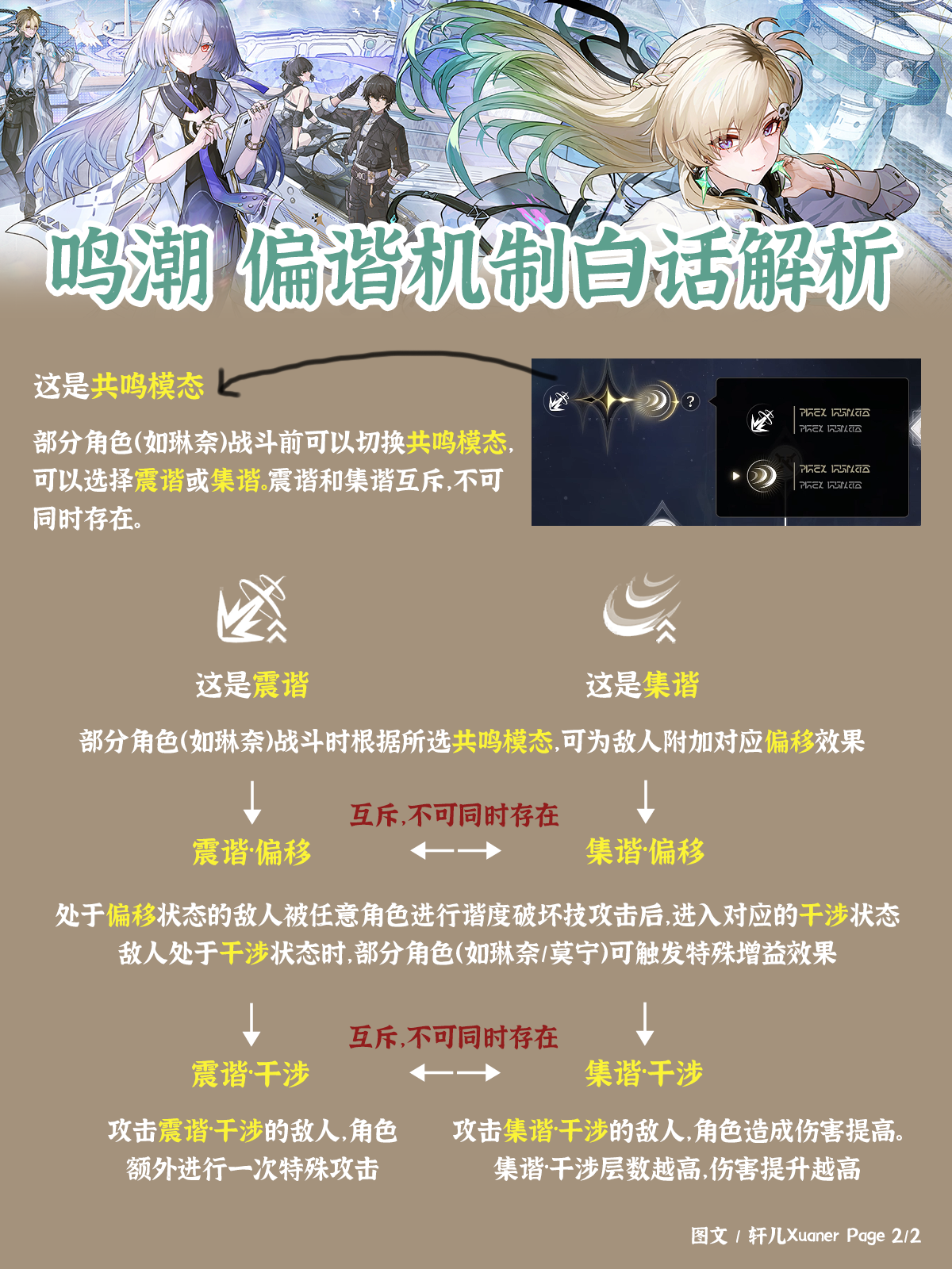 各位漂泊者,鸣潮V3.0版本即将更新,新的战斗机制偏谐机制也会上线,轩儿Xuaner给各位漂泊者用简单的话描述下最新机制。(ps.也欢迎各位进行指正和补充)--------------------------偏谐机制一共有以下几个术语偏谐值:角色攻击敌人累积,在敌人血条左侧展示进度。失谐:偏谐值满了,敌人就进入失谐状态。谐度破坏技:大型怪物需要角色主动施放谐度破坏技进行谐度破坏。偏谐