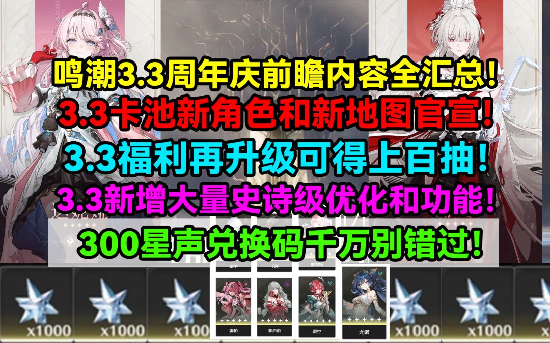 鸣潮3.3周年庆前瞻内容全汇总!3.3卡池新角色和新地图官宣!3.3福利再升级可得上百抽!3.3新增大量史诗级优化和功能!300星声兑换码千万别错过!【鸣潮】#鸣潮创作激励