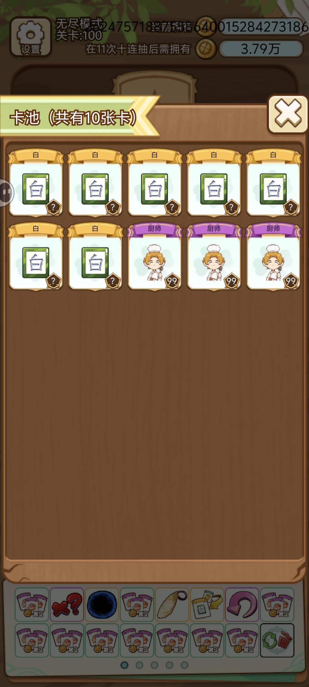 随便玩了个厨师流,运气不怎么好80多才差不多养好,最后打个100来关用黑洞结束换别的玩了