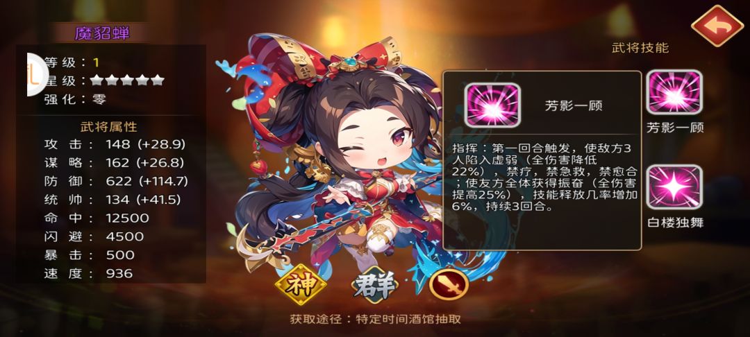 魔将入门级介绍:魔貂蝉 武将属性:如图。 武将定位:辅助。 技能效果: 1. 2. 大家觉得此魔将怎么样呢,评论区留下你的看法吧!#主公跑跑跑 #浅评一下 #游戏攻略 #游戏日常