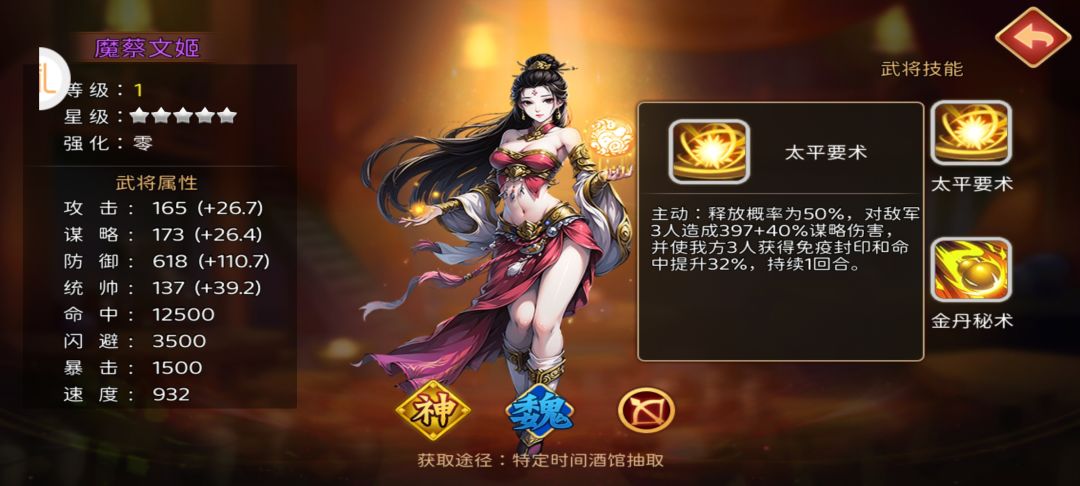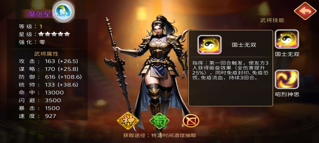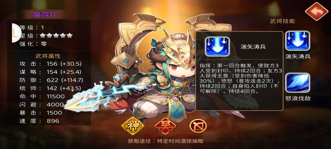 武将属性:如图。 武将定位:辅助。 技能效果:1.三伤主动,获得免疫封印并提升命中。2.第三回合指挥回血,附加愈合和提升防御,提高自己主动技能概率。 武将亮点:速度快,与曹仁有一定配合。 武将缺陷:技能效果一般,见效慢。 大家觉得此魔将怎么样呢,评论区留下你的看法吧!#主公跑跑跑 #发现好游戏 #浅评一下 #游戏攻略 #游戏日常