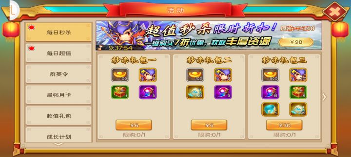 队伍是蜀国普通将队伍,如图孟获+关羽+法正核心是孟获前排吸收伤害,关羽第三回合爆发输出伤害,法正给予辅助或适当通过第三技能回复该队伍适合平民用于扫黄巾军,成型后满体力直接撸五次16级黄巾不用征兵,节约时间。以上队伍来自早期大佬攻略,只是搬运推荐,氪金大佬请无视。