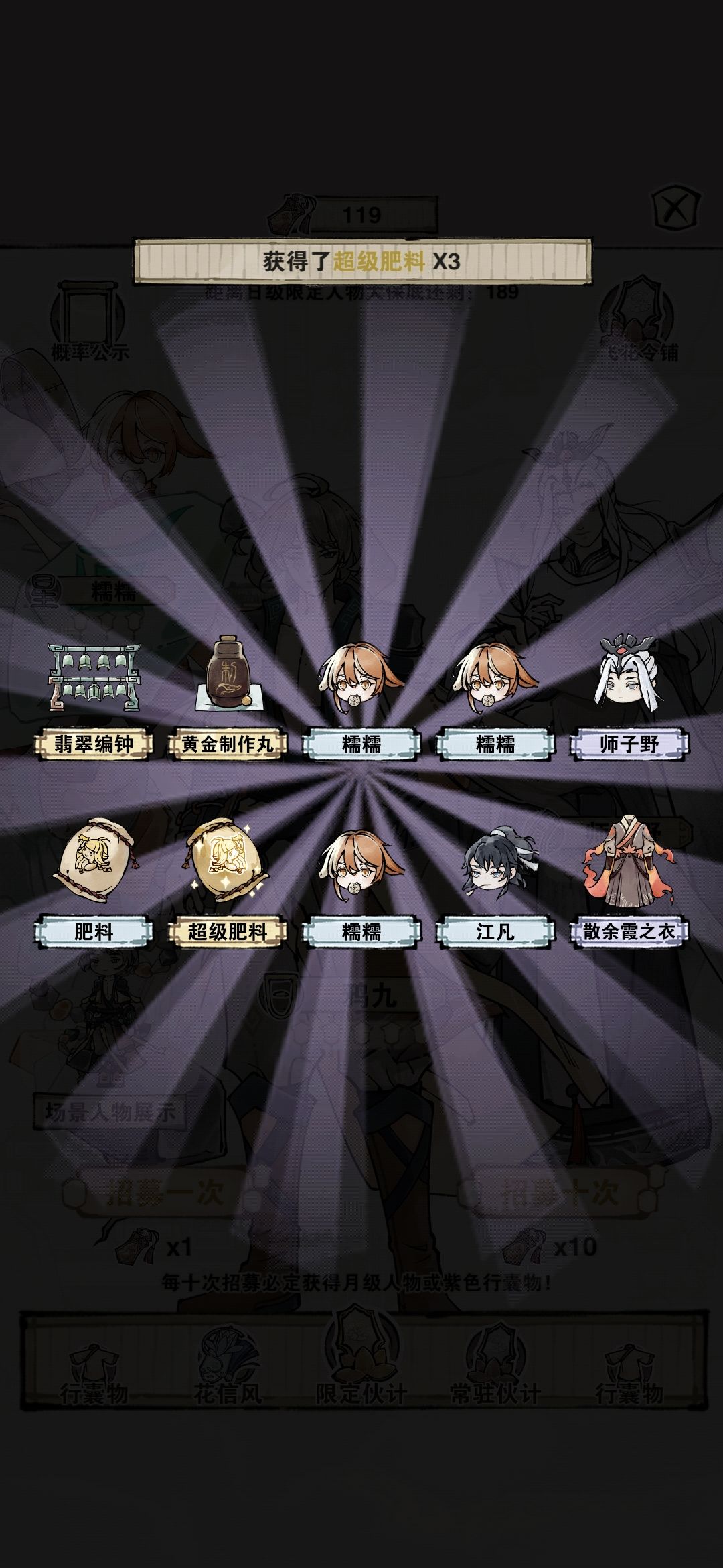 v2.0.5更新内容: 1、新增行囊物分解功能 2、行囊物修复改为铜币消耗(每次可以直接回满) 3、新增行囊物上锁解锁功能 4、优化伙计页行囊物效果展示 5、优化殴打丘捕头的御值要求(会随着年份增加) 6、其他修复和优化 大家快乐游戏~~