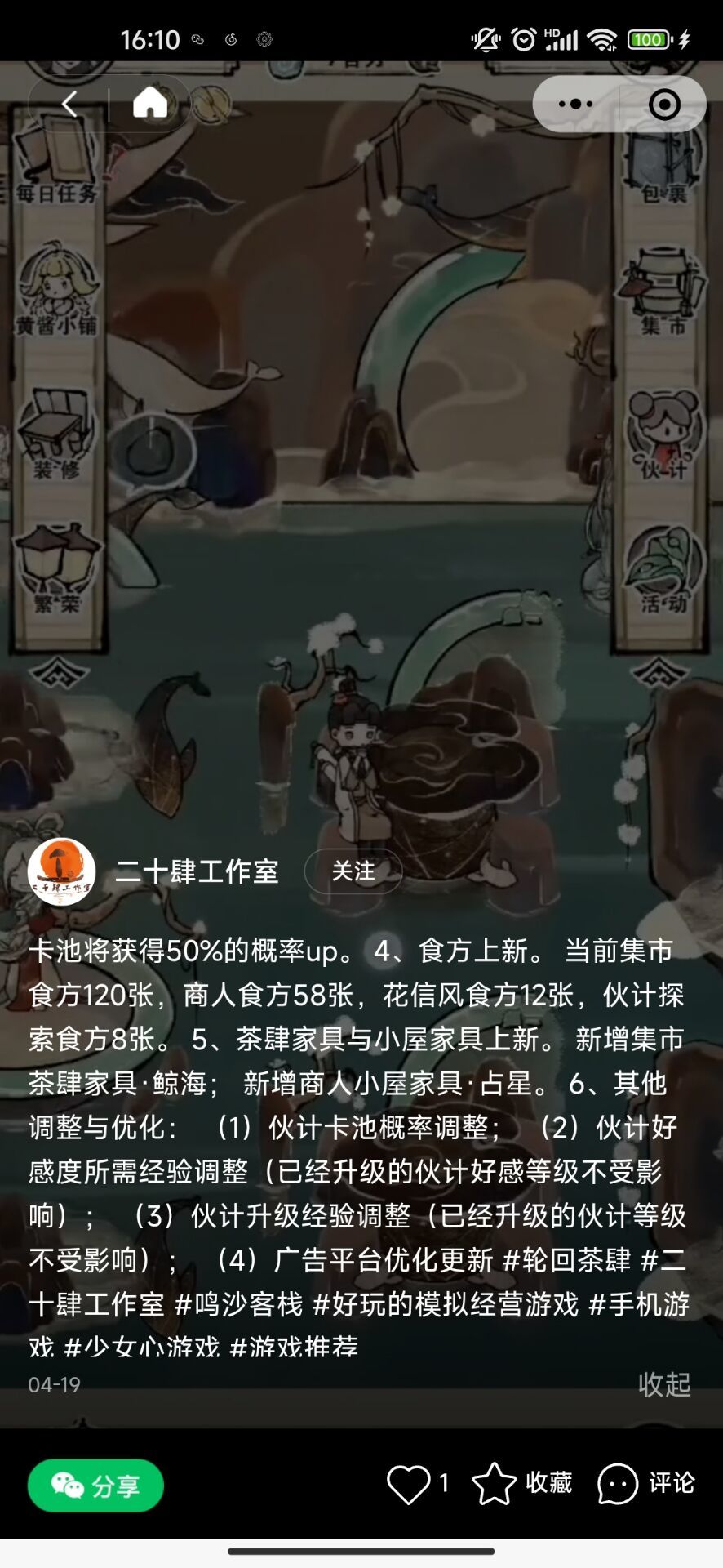 一些感觉有必要跟新来的掌柜的讲一下的事情: ①⚠️⚠️⚠️每月底有限定活动,会有限定的角色卡池会有限定伙计!非活动期是常驻池,抽够能用的角色就收手开始攒招募令抽攒限定吧!!! (限定池没出也不要急,限定伙计过时后都会进入常驻池) ②卡池的“封面伙计保底”指的是限定池,常驻池是没有封面小杏240必出的说法的。 ③“外出→郊外”每天点击有大量食材掉落,后续随着玩得更深入解锁的场景也是同样的功能。