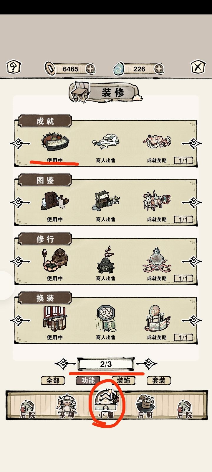 2.1.4版本 现在家具还少,茶肆和小屋先放一起了 家具7套,小屋完整的5套,六道套装差一件,可观赏。 点开大图食用效果更佳~