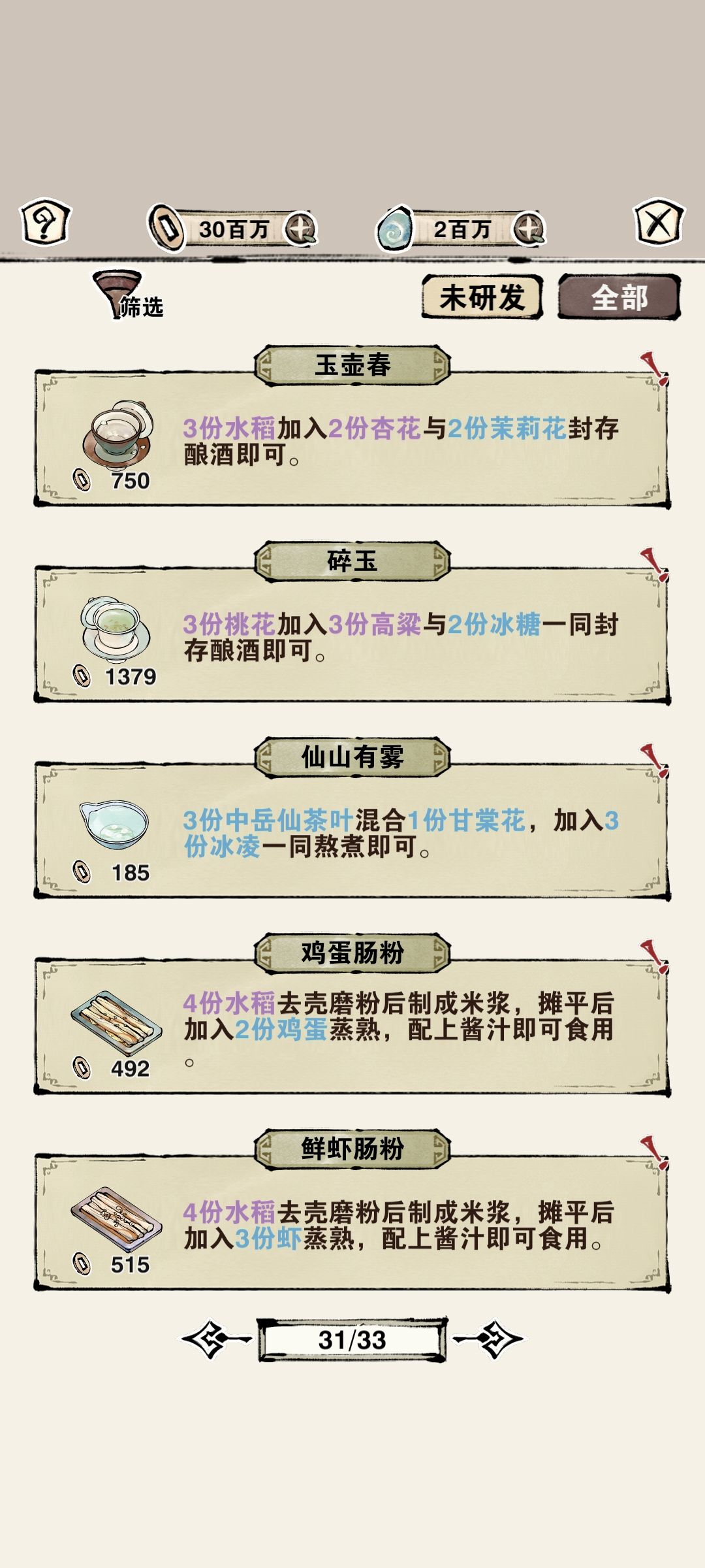 带有商人材料或不可购买材料的食谱价格排序