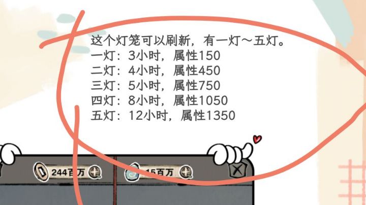 【伙计搭配】 一灯:3小时,二选一,无食方,属性150 二灯:4小时,三选一,有食方,属性450 三灯:5小时,五选二,有食方,属性750 四灯:8小时,五选二,有食方,属性1050 五灯:12小时,五选三,有食方,属性1350 (属性代表达到150%的要求,这个也是探索玩法有趣的核心所在) 注意,必须超过150%(至少151%)才能获得奖励。 建议只探索三四五灯,因为三灯开始出金票了。一二灯尽量