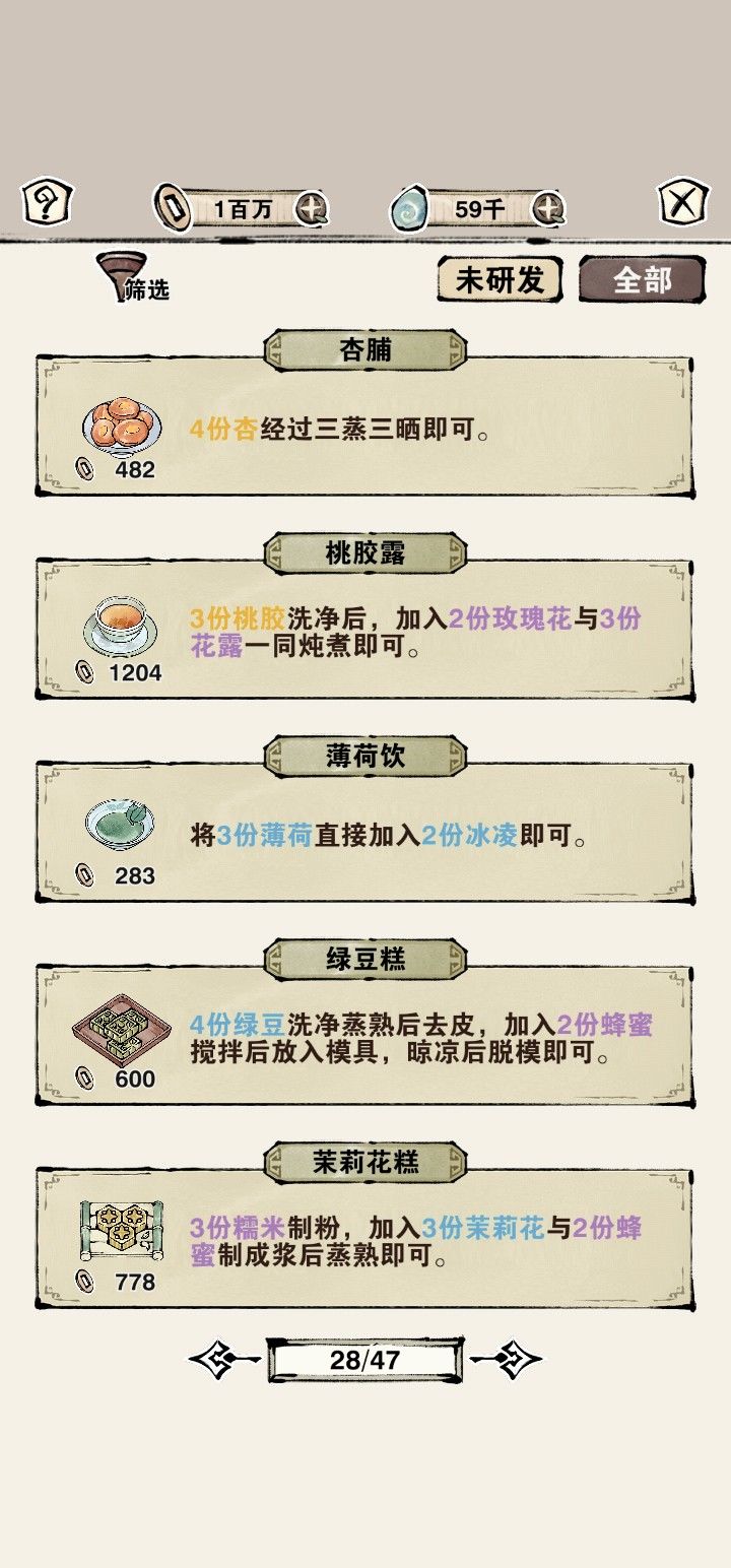 多图警告!!!多图警告!!! 一.食方篇 有很多小伙伴(包括我)都被新手任务(更新后更名为主线任务)的5/10/15个食方卡住了。 很感谢各位小伙伴无私分享食方,但请各位谨慎选择食方。 因为游戏里提到其他途径的食方必须获得后才可以成功研发!!! 只有集市(食方铺)的食方,即使没有获得,也可以研发。 (可以点击食方铺左上角问号查看) 也就是先通过看广告或主动刷新出来不去买,去论坛借鉴是可行的! 同时