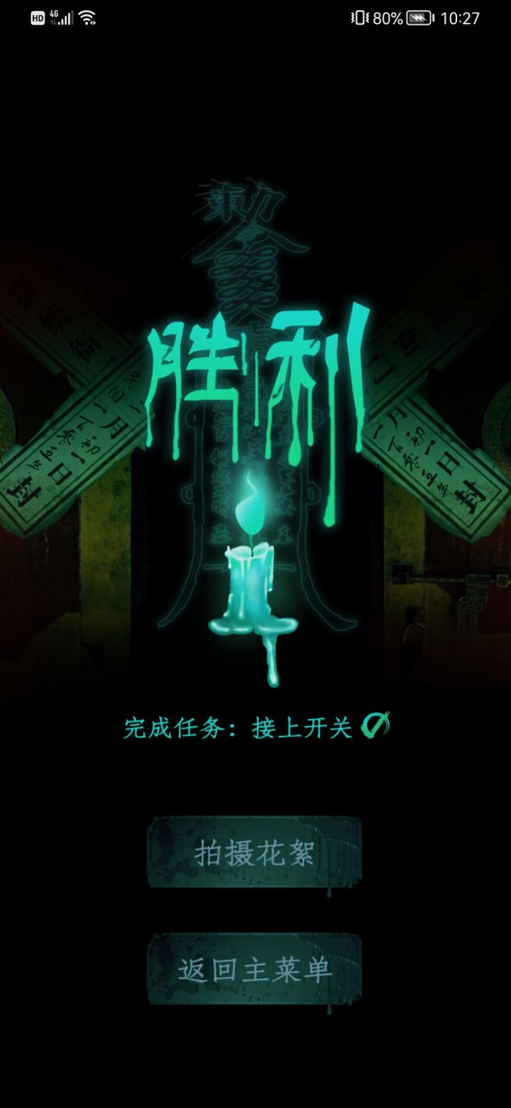 第一幕 苏醒1.跟随新手指引擦好后,,计算四位死者年龄差点击灵牌,将收集到的蜡烛余满贯二十年,弱冠蜡烛钟义十五年,束发蜡烛赵二五十年,知天命蜡烛钱三四十年,不惑蜡烛2.灵牌下方颜色与四神兽眼睛对应3.拿到撬棍后,撬开(右边,对向相反)4.,拉到最右边点击→过场CG放完后用手帕擦拭第二幕1.(注意jump scare)在左侧暗格的位置填上,如无反应则需2.右侧