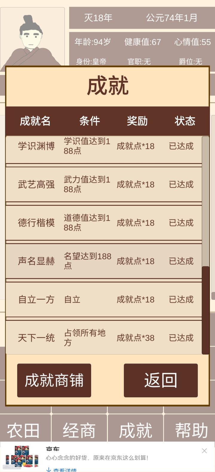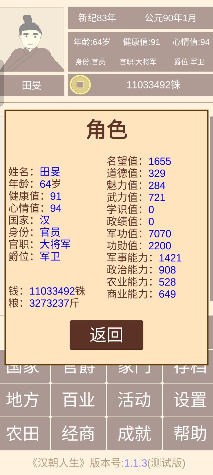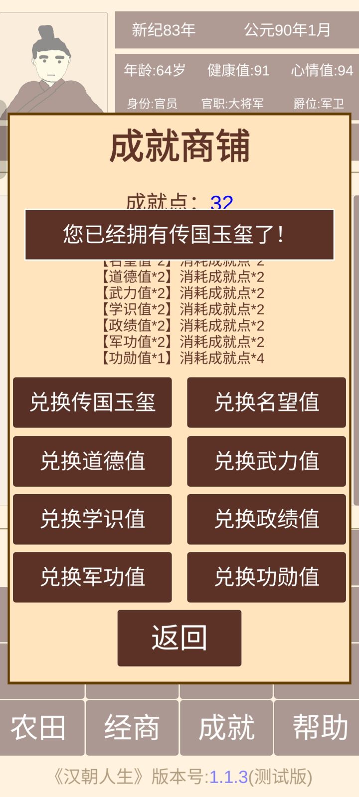经过第一代、第二代基本都够了,就看你的命了,寿命不够活着到丞相(大将军)这个官职赶紧造人,把健康值用完选择下一代开始称帝之路,一般能活到80岁以上就能当上丞相(大将军)。