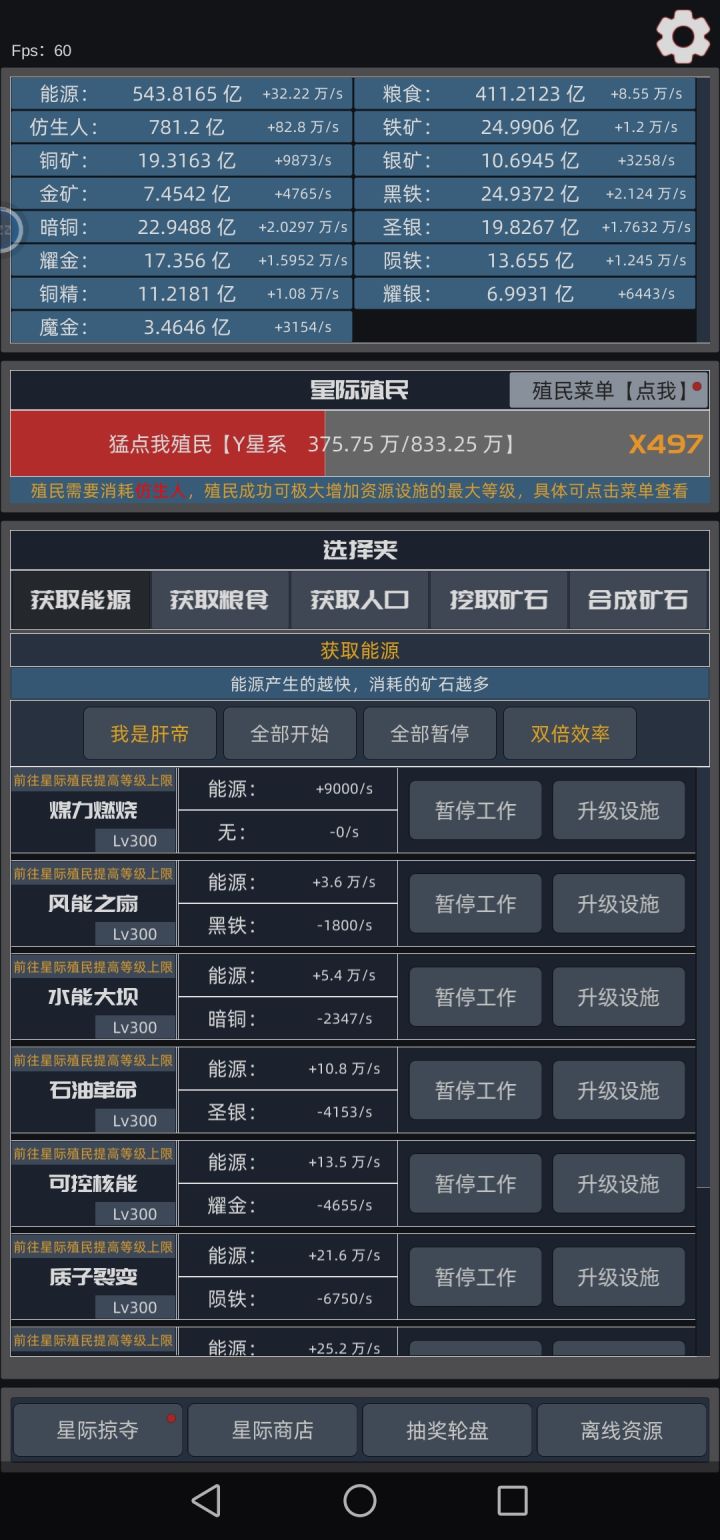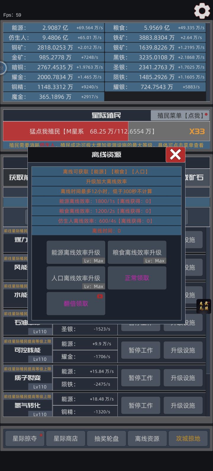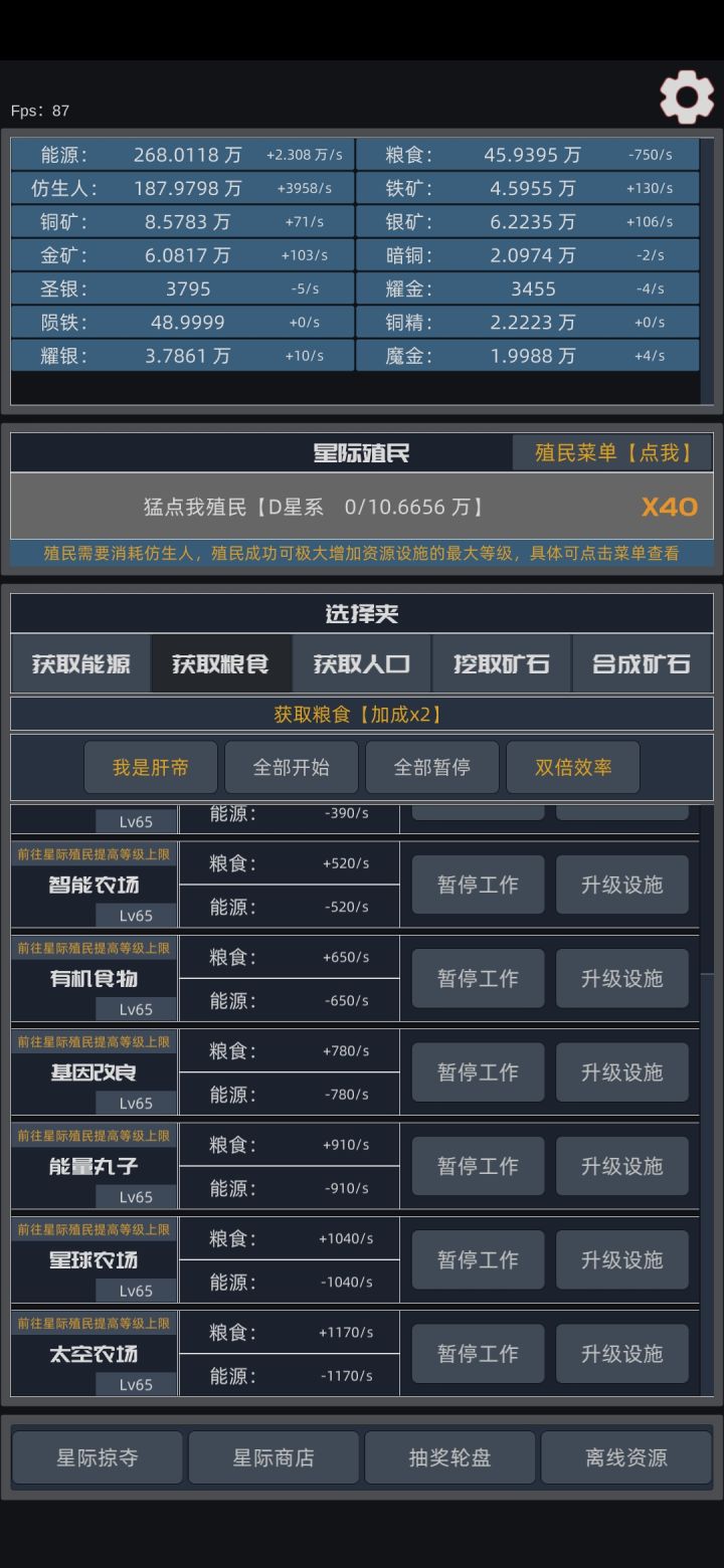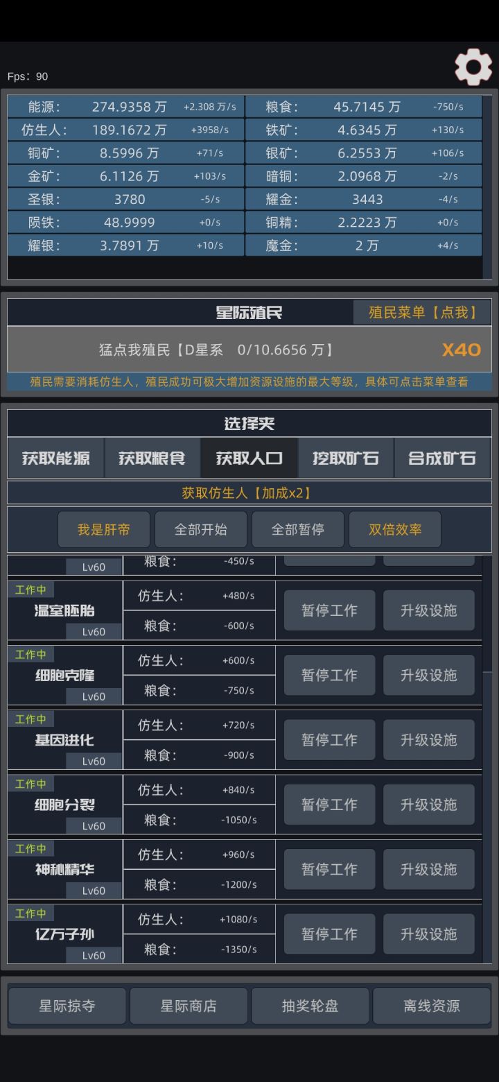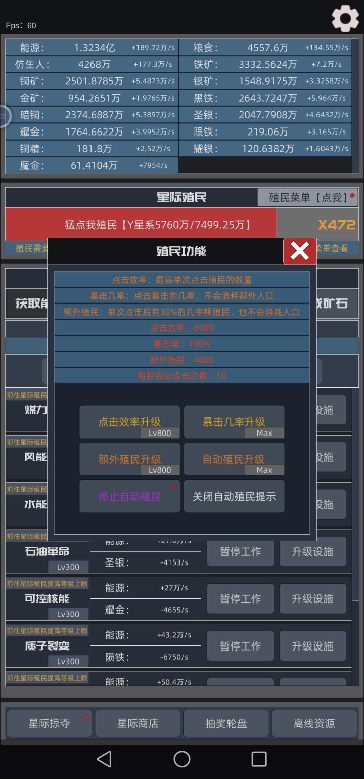 版本升级前自动殖民一次37万,800万升级。更新后,自动殖民升级到一次100万,7500万升级,预计9小时😇😇,肝疼。