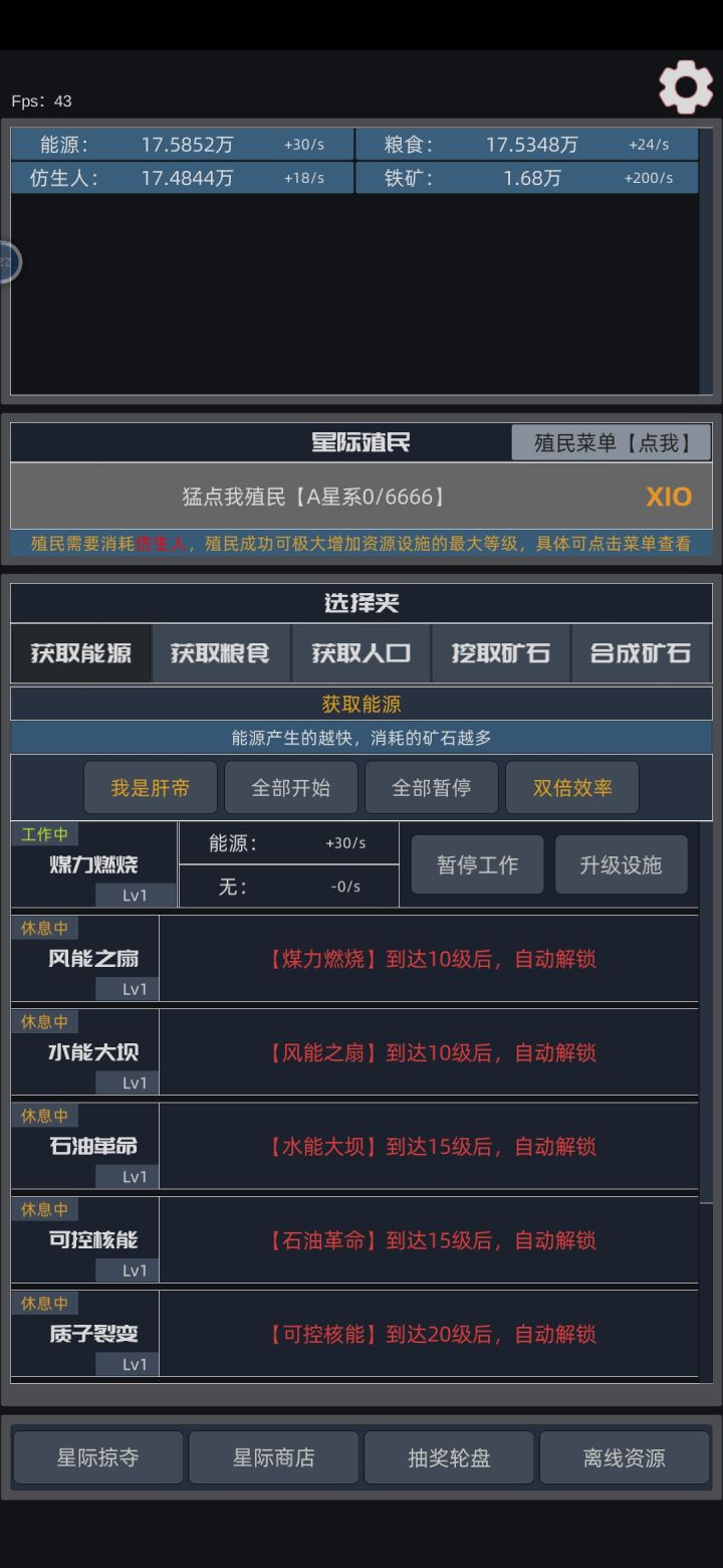 1.6版本,下午更新的,一进去,毕业了…能点的都点了,就等殖民提高等级了,感觉早上还在艰难求生,下午数值就直接爆了…