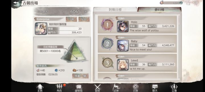 jjc一打开排行榜,直接惊到我力,果然氪金才是王道,作为无氪已经躺好了游戏美术和音乐真的美到不行啦,每个角色还有单独的曲子,完全可以轮着听一遍,直接赚到。