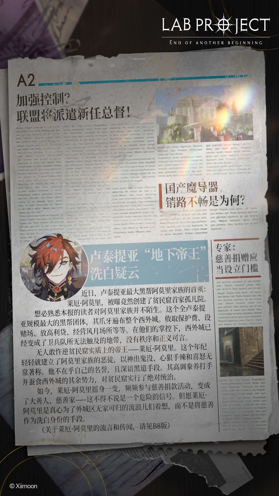 #米拉多新闻#今日报道 卢泰提亚惊现连环杀手? 黑帮盘踞,命案频发,西外城区正在成为“无法地带”。 #纳徳公国# #阿莫里家族# #库罗托# ============================= 与宿敌相爱相杀的魔法特工题材手游《代号:LaB》预约现已开启! ▶前往预约 ◇Taptap:https://www.taptap.com/app/234465 ▶玩家交流 ◇官方QQ群:825585