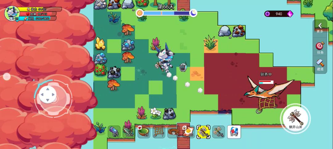 自动化以后真的爽,好久都不用管,今天骑龙去视察发现我的三角龙饿了没有自动喂,估计卡住了,然后一地的资源哪!看着真爽!下一步就是努力每个区块建自动攻击塔,保护我的龙崽子们。哦耶😋