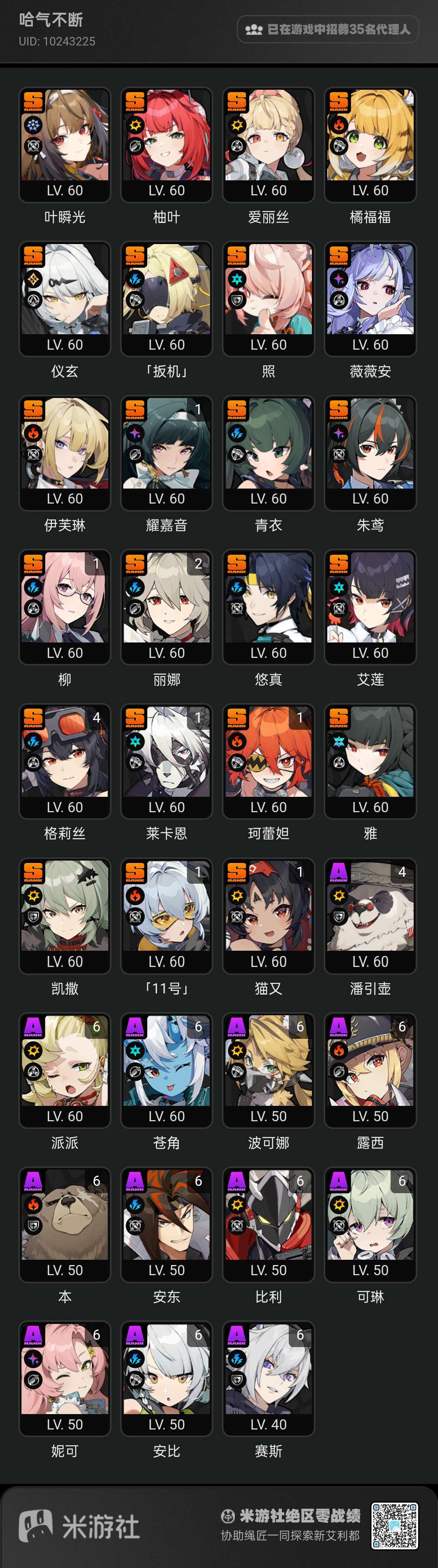 : 米池这关确实很夸张,我2.0邀请了我朋友来玩,2.3就都阵亡了,歪跑了。不过最近又有三个人回来玩了。不得不说他这个流水估计有一半是歪了然后开始充钱顶上去的流水。聊一下绝区零的爽点,排轴之余带了不少的格挡互动,虽说就是按按空格但打起来看着挺有操作的。不好的地方我个人认为是小游戏太多了,本身是款动作游戏,搞那种看电影做饭自走棋实在是玩的发困,这次联机就蛮不错的。至于保值,强度焦虑,厨子党,那还是老生常谈了,崩坏三之后,米式开创的新游戏剧情很难厨角色,叶瞬光师傅扳机伊芙琳是我比较喜欢的角色,但能有几个会出新形态,不出新形态,那剧情围绕卡池角色的这种更新模式下,她们四个就江湖再见了。这点还是很伤人的。但就像你说的,当个赛博手办玩,自然是极好的了。总之就不要套动漫小说影视作品的厨子党那套逻辑,反而能玩的更舒服。柒的猫 : 对啦还有,剧情是以年番的感觉来更的,内容需要有一定理解力,社区内的虚构史和各种猜测也是很有趣的。