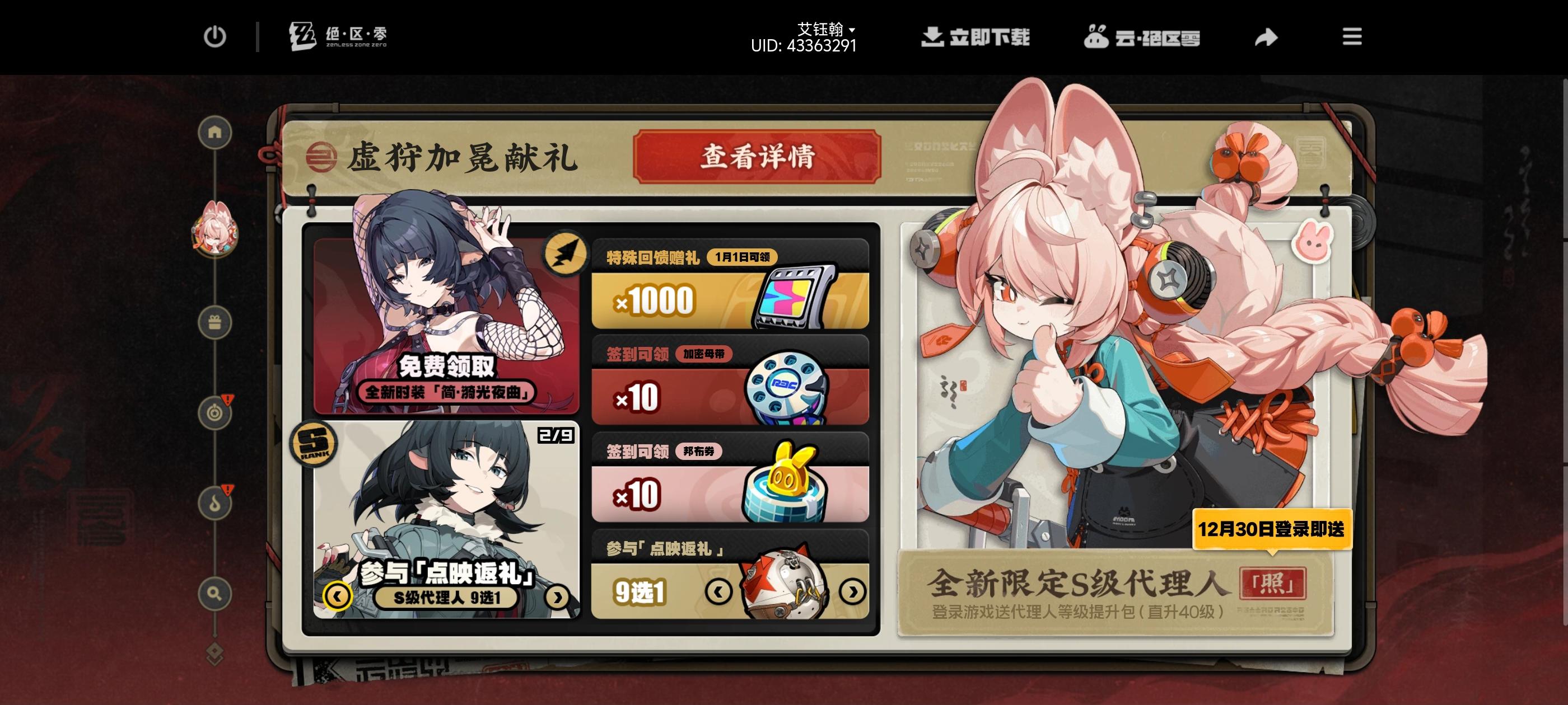 就说我每天下班回家累死,玩其他游戏,最后上线绝区零,月卡签到,刮刮乐,喝咖啡,麦片,就可以下线了,三分钟不到领完一天奖励。