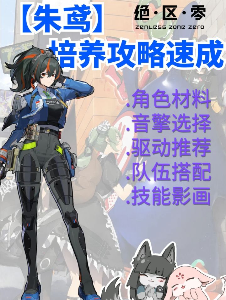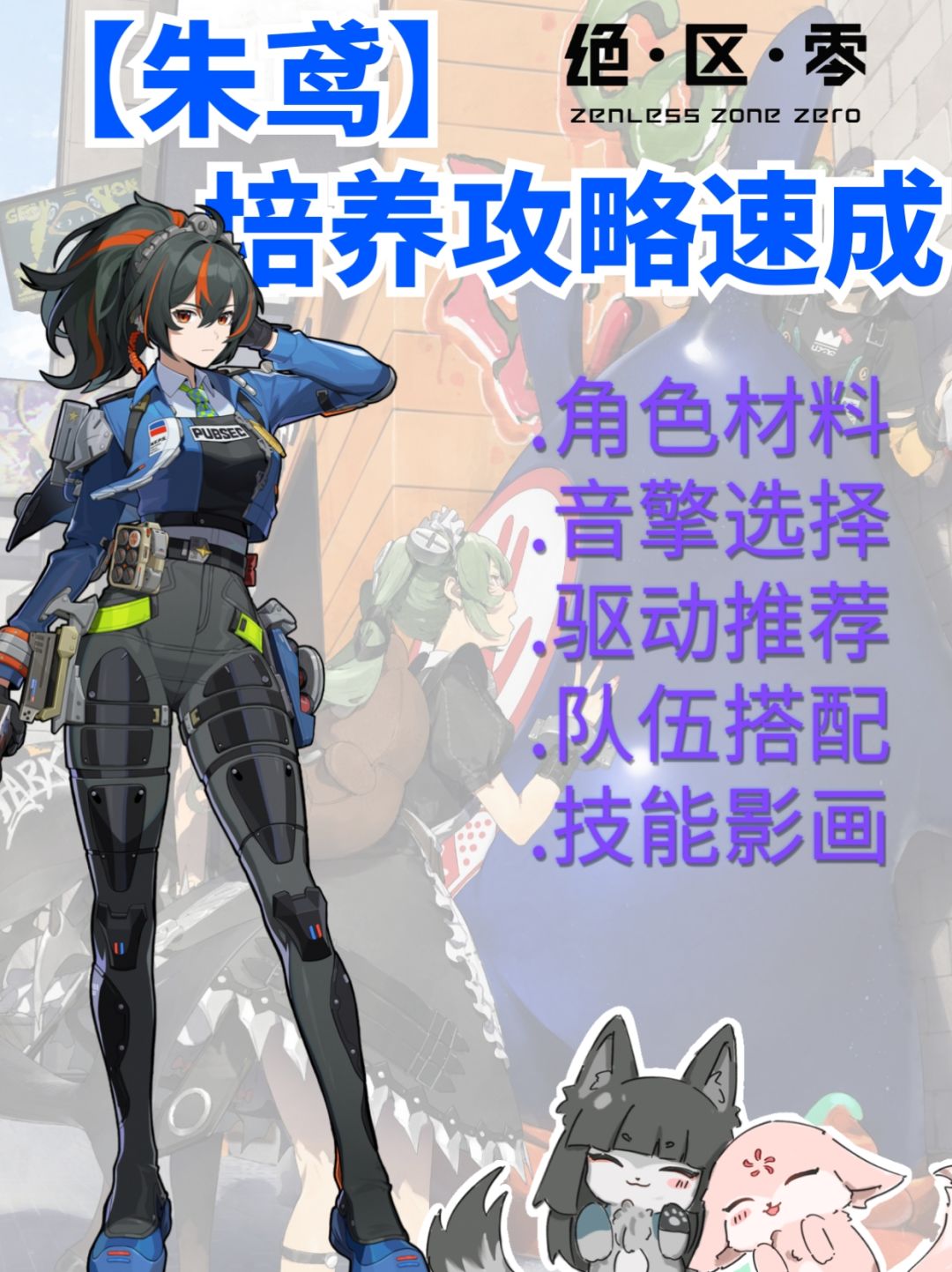 UID:10268057 hi各位绳匠们大家早上中午晚上好呀,这里是为大家带来角色攻略的青枫 本期带来的是「朱鸢」的角色攻略,她是〖新艾利都治安局〗的新晋治安巡查官。刑侦科的精锐,宛如后辈的前辈。 🧿Fairy:接下来以图鉴的形式简要整理一份「朱鸢」的养成参考,并主要针对技能机制做下图文解析,帮助绳匠们快速认知角色特性及养成方向,其他角色攻略也会持续整理,可前往查看,嗯呢嗯呢~! 🌟养成图鉴🌟 朱