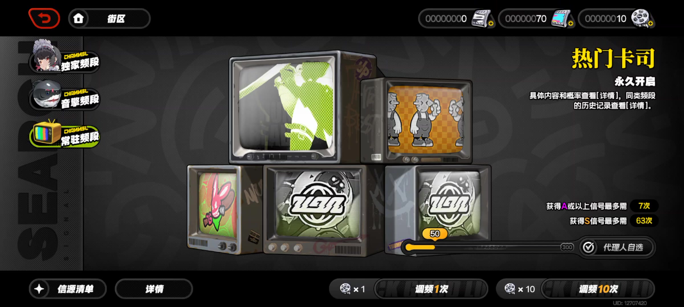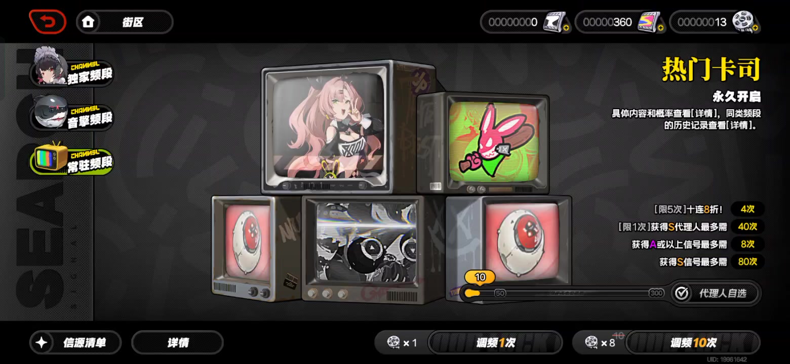 绝区的卡池机制是怎样的? 独家频段、殷勤频段、常驻频段、颁布频段的卡茨机制区别是什么?本期视频就带各位完全明白, 公测兑换码:ZZZFREE100 更多福利和菲林兑换码进邱邱裙(220838349) 目前角色营的卡池只有四个,每个卡池的基本逻辑相同,都拥有抽取到一定次数时必定出现最高品质角色或物品的机制,同时第一次出现的不是单期up,第二次再次出现相同品种时必定是当期up,常驻混合池除外。 而这些