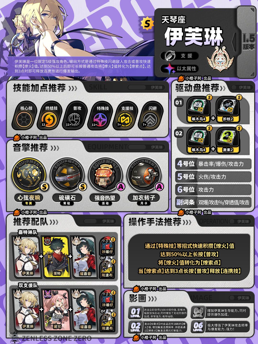 UID:12105内容来自创作体验服,开发中版本,实际内容请以正式上线版为准 哈喽喽,大家好!这里是『邦布帮帮团』的小橙子阿! 三生有幸,十分骄傲,小橙子我获得了绝区零创作者体验服资格。 因此本期小橙子将带来新艾利都治安局”阵营的即将上线的新角色青衣角色攻略(主要是一图流),大家可简单食用,详细攻略等一下青衣上线吧。 【简析&一图流】 青衣是一位电属性的击破代理人。作为首位限定击破C,青衣主要是