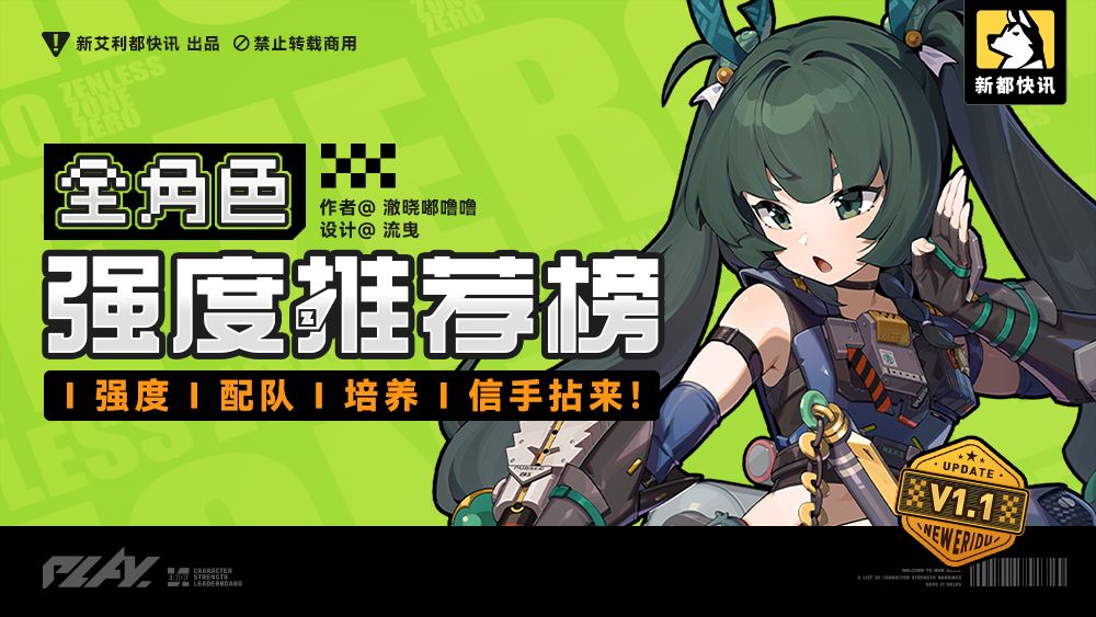 UID 10449294 各位绳匠们好呀,这里「新艾利都快讯」的澈晓嘟噜噜! 绝区零1.1版本已经开放有些时日,随着青衣实装和新深渊更新,不少角色的强度和培养也都衍生出新的思路。经过重重爆肝,今天为大家带来1.1版本全角色强度推荐榜,包含目前所有角色的评级配队、加点配装和对角色当前的使用说明。 本期为大家更新了全角色的具体加点等级推荐,并且对攻略内容进行了较大幅度的优化和更新,希望对大家有所帮助!