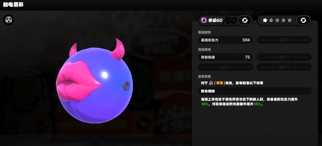 防爆者是朱鸢的专武,主属性为暴击伤害,刚好契合朱鸢核心技的高额暴率。 武器技能进一步为朱鸢提供了增伤加成,可惜不是加攻击。 总体而言,专武相比精5加农转子约有10%左右的提升量,相比常驻五星音擎硫磺石提升约7%,属于中规中矩的提升量。 有预算的话,还是建议优先考虑朱鸢影画1再抽音擎。 聚宝箱是妮可的A级专武,其能量回复属性能让妮可更加频繁地释放强化特殊技,提高整体的减防覆盖率。 聚宝箱的全队增伤属