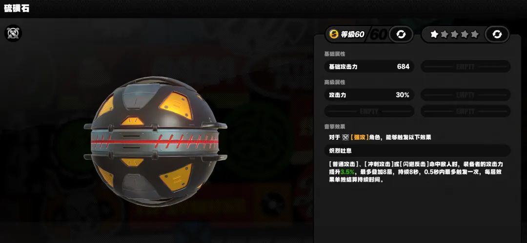 各位绳匠们好呀,这里是小咖。上期给绳匠们讲了S级角色自选推荐,这期就给绳匠们接着讲,常驻里的S级音擎,又是哪个最好。 01 T0幻神-硫磺石 职业:强攻 满级属性:攻击力684,攻击力30% 效果:[普通攻击]、[冲刺攻击]或[闪避反击]命中敌人时,装备者的攻击力提升3.5%,最多叠加8层,持续8秒,0.5秒内最多触发一次,每层效果单独结算持续时间。 简单分析:除了不提供双爆以外,基本没有缺点。只
