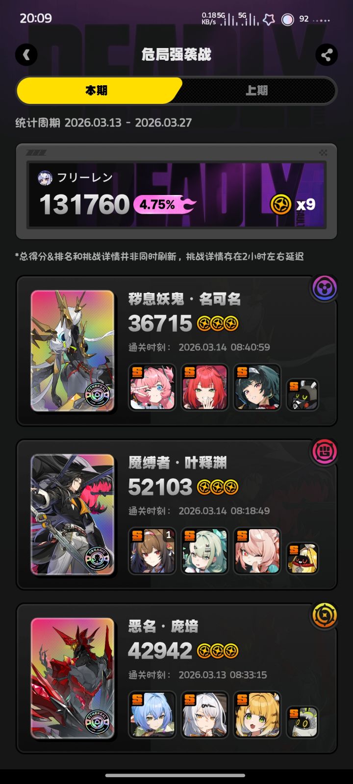 手残党,有不少地方还能凹,但感觉最多只能提个2到3千分,燃尽了(›´ω`‹ )一点失误没有估计也在4万5以内,雅狼苍满分5万是不太可能了,失衡太慢,除非狼哥5命6命?换雅柚狼或雅柚苍也许可以轻松出分吧。#绝区零 #绝区零微光引灯时 #绝区零玩法指南