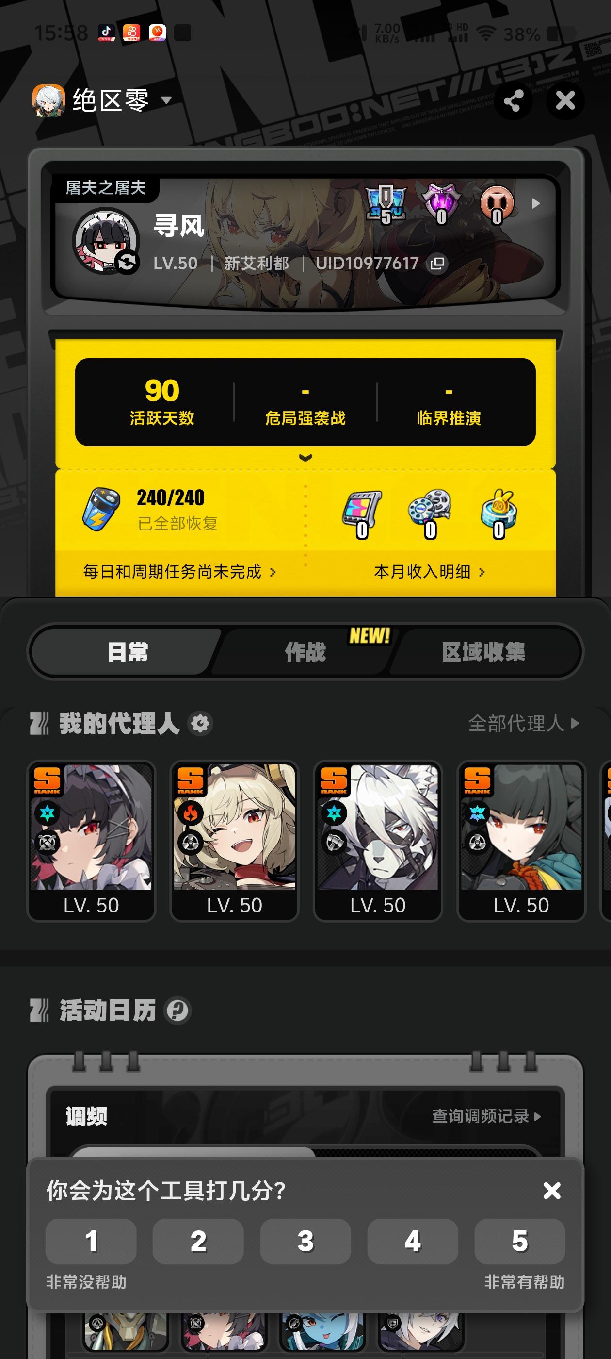 没记错的话应该是去年年底退坑的,最近考研结束想找点游戏玩玩现在绝区零的情况养哪些角色性价比高一些,玩了玩我现在的角色感觉都没怎么养好,挺刮痧的