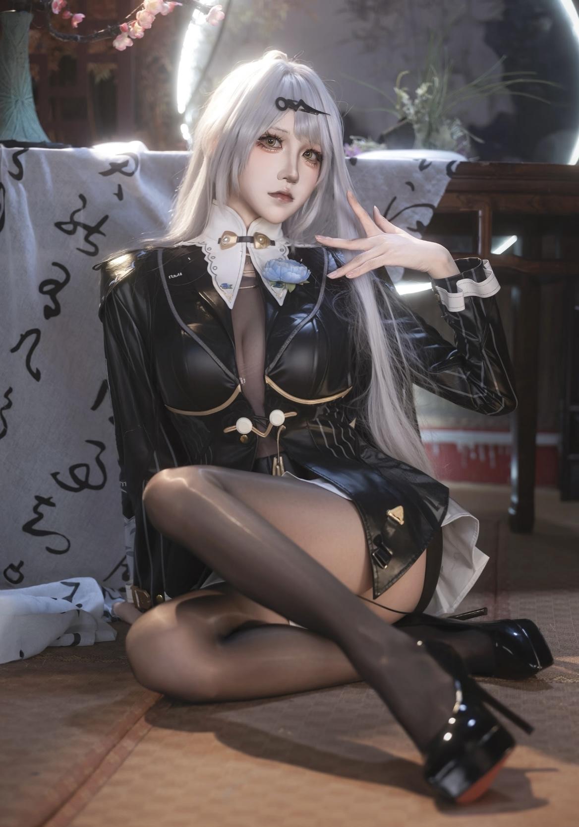 这组cos把角色的冷艳气场诠释得淋漓尽致!银白的发丝质感高级,搭配黑色皮质服饰,利落的剪裁勾勒出飒爽的线条,领口的白色蕾丝与蓝色花饰又添了几分精致。妆容上,眼妆的暖调与冷色的服饰形成反差,让眼神更具故事感,指尖轻抬的动作优雅又疏离,背后的圆形光环更是为画面增添了神秘的氛围感。从妆造到神态,每一处都精准踩中角色的气质,将角色的酷飒与冷傲完美复刻,一眼就被这强大的气场惊艳到。#绝区零 #绝区零将临未