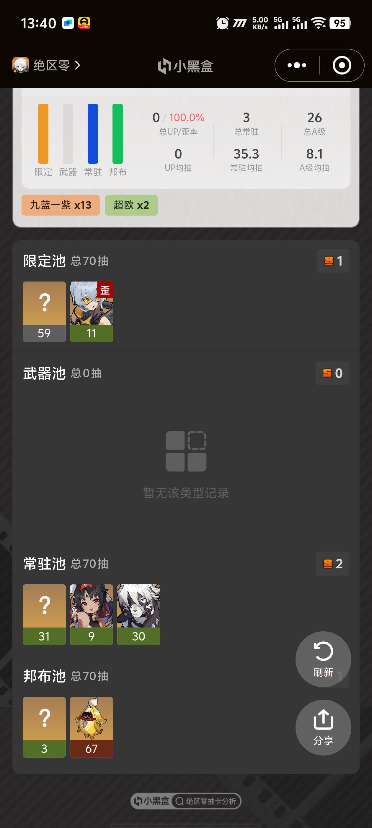 如果开个新号主线通关能抽个几加一叶瞬光(可以考虑歪一个)后的结果