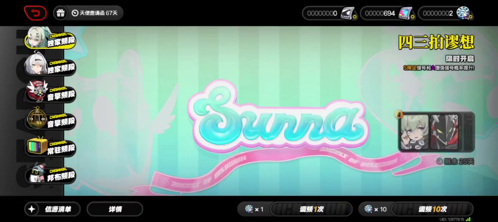 那时候我还并不打算入坑zzz这款游戏,但在那年的5月份我第一次见到你们,见到的第一眼开始,我便爱上了,我便入坑的这款游戏,直到游戏开服的583天,也是我游戏游玩的583天,我终于获得了千夏,也终于见到了妄想天使全貌,和以前常说的承诺不同,虽然我不一定能全部获取,但我也觉得圆满了,你们(妄想天使)是我坚持这游戏的动力之一,我打心里的感到高兴,从开服的时候我就在想,你们每个人都会有一首ED,还有每个