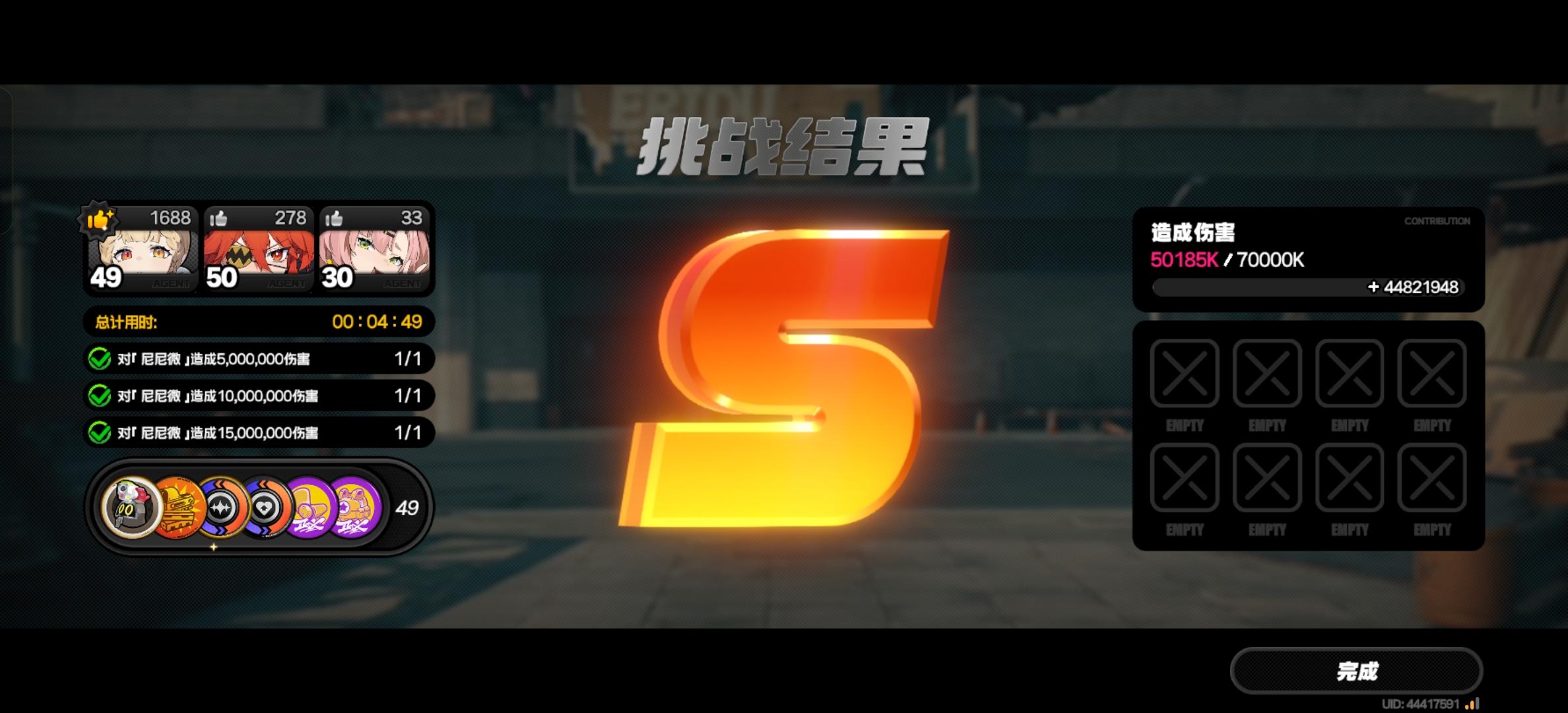 开服的时候玩过一小会儿,后来觉得角色不好玩就退坑了,最近因为送照,又是大剑就创新号回坑了。拿到照之后发现机制和动作和蓄力时间我都不太喜欢,就主要玩的肉鸽角色试玩,拿着试玩的物理异常队居然打过了活性8的肉鸽。然后21号up了爱丽丝也是抽了个0+1,打了一套闪避和强击为主的鸣徽之后就去打60级的刀耕梨火,直接打出了任务最高要求的2倍的伤害。我宣布只要有能量鸣徽爱丽丝就是肉鸽的神